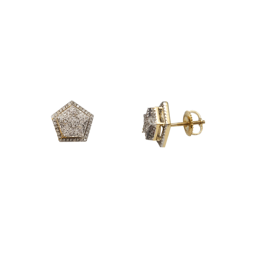 Diamond Iced-Out Star Pentagon Halo Stud Earrings (10K)