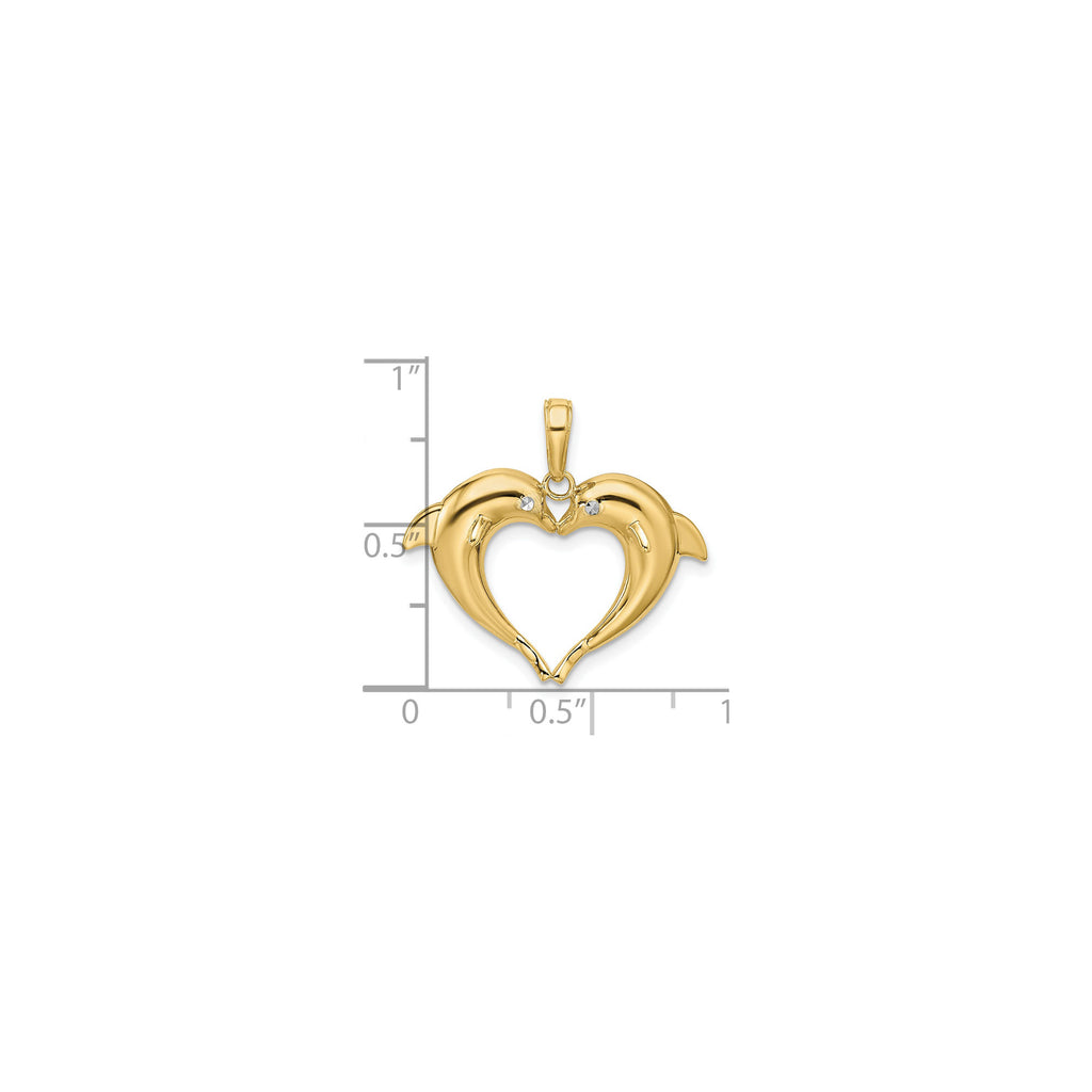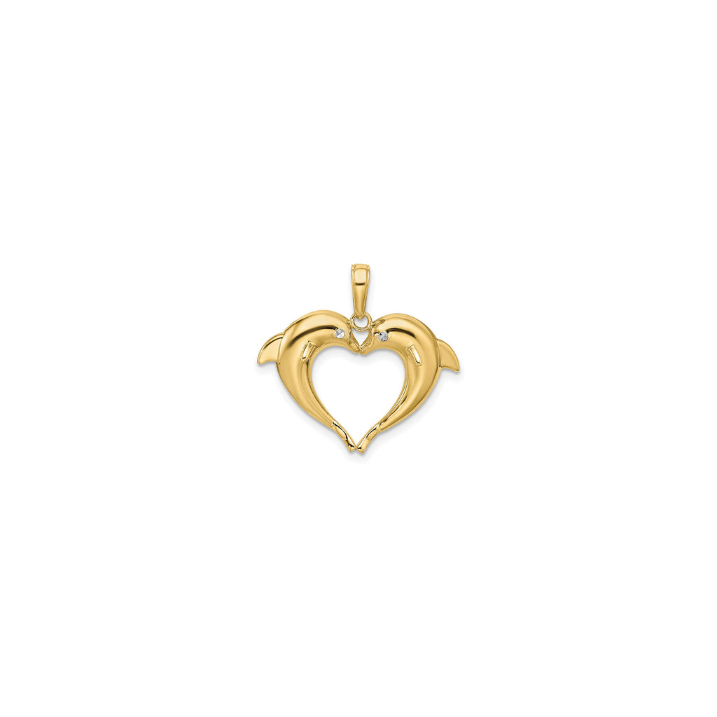 Double Dolphin Heart Pendant (14K)
