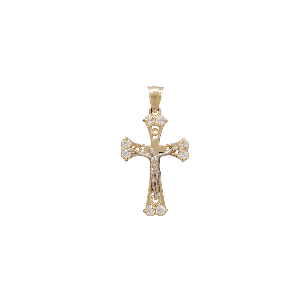 Zirconia Two-Tone Crucifix Pendant (14K)