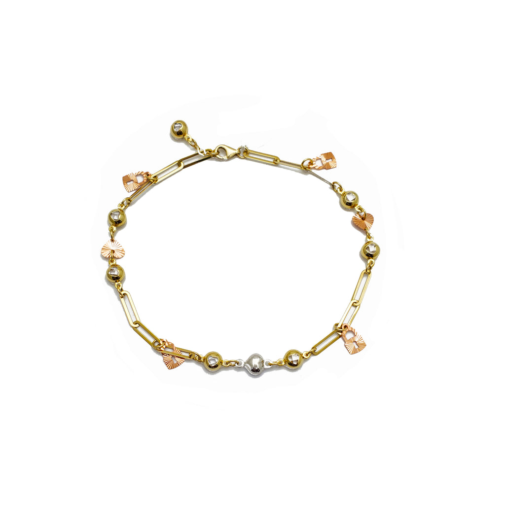 Zirconia Charms Paper Clip Link Anklet (14K)