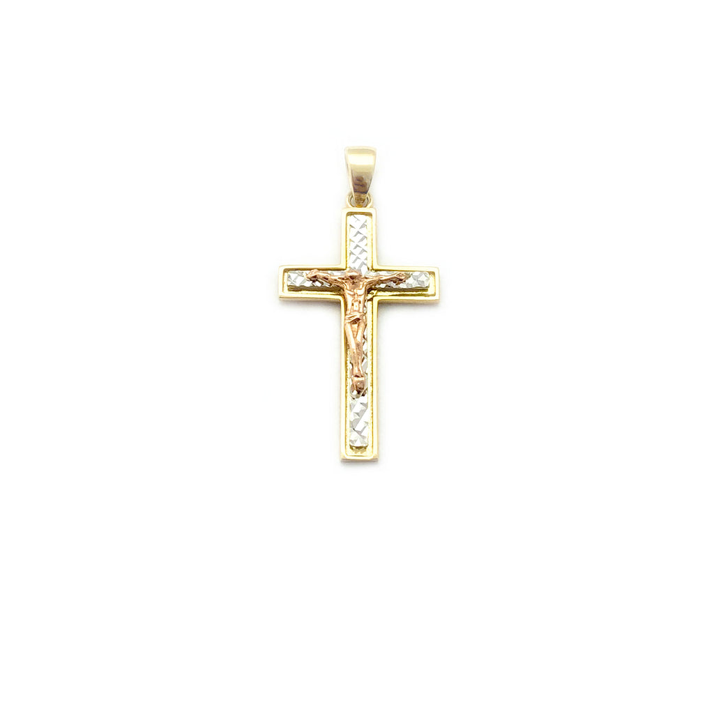 Tri-Color Diamond-Cut Cross Pendant (14K)