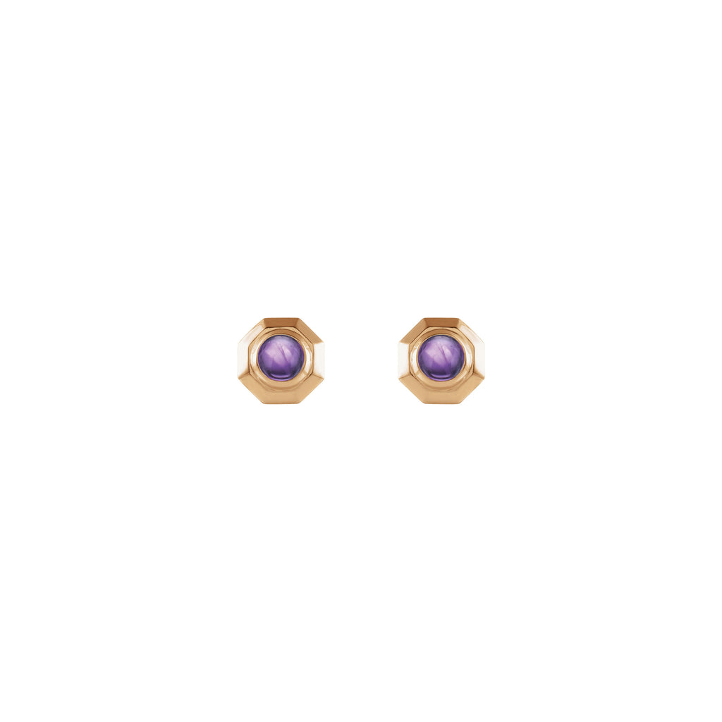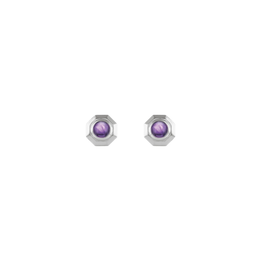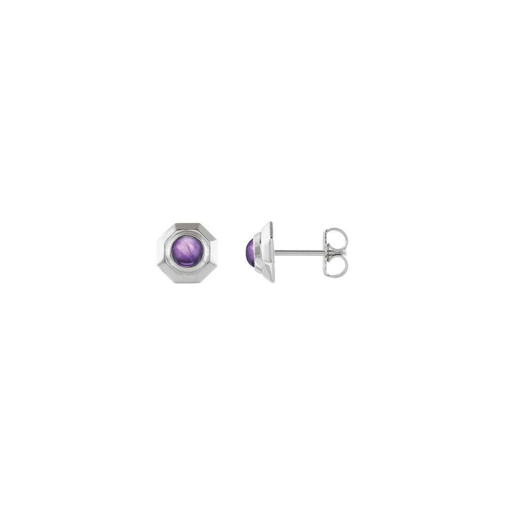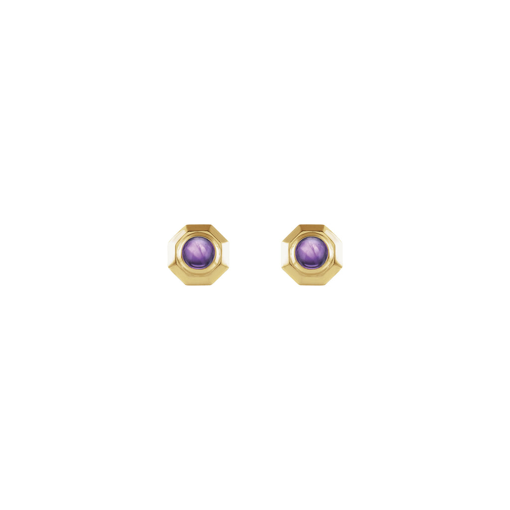 Natural Amethyst Cabochon Octagon Stud Earrings