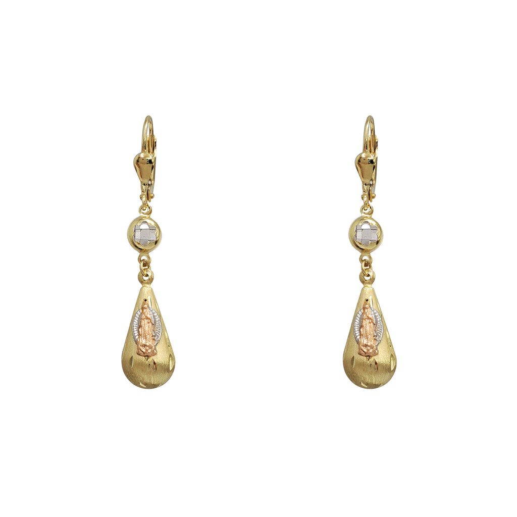 Tricolor Virgin Mary Teardrop Dangling Earrings (14K)