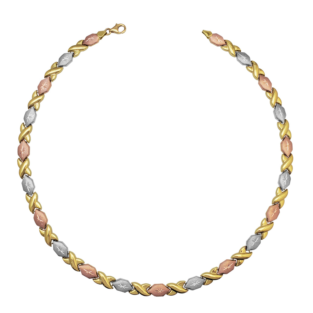 Tricolor Brushed-Finish Diamond-cuts North Star Fancy Necklace (14K)
