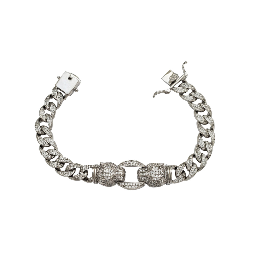 Iced-Out Panther Head Cuban Bracelet (Silver)