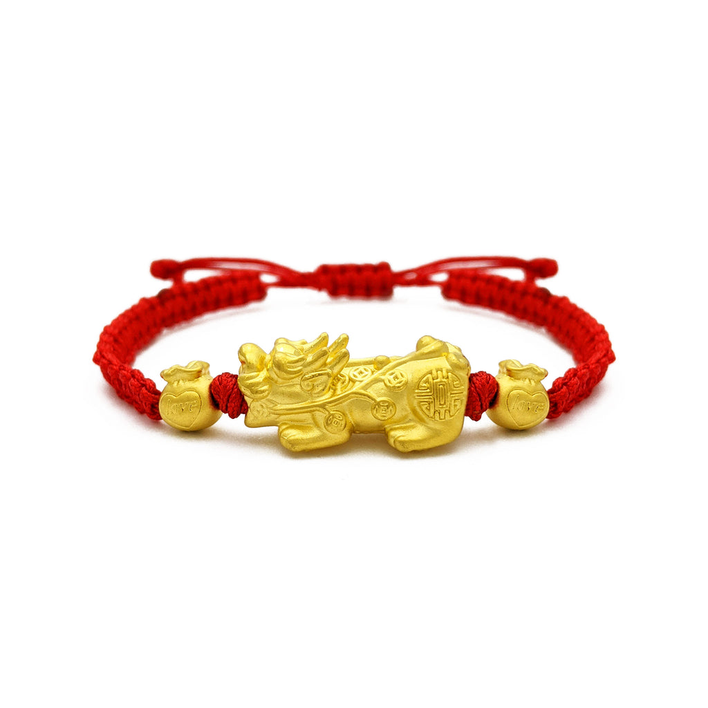 Love and Prosperity Pixiu Red String Bracelet (24K)