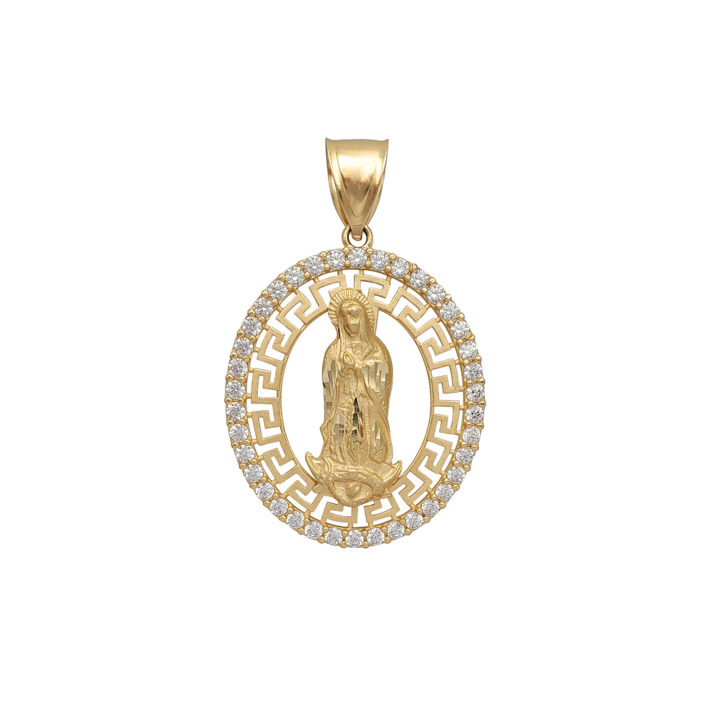 Zirconia Oval Greek-Key Virgin Mary Pendant (14K)