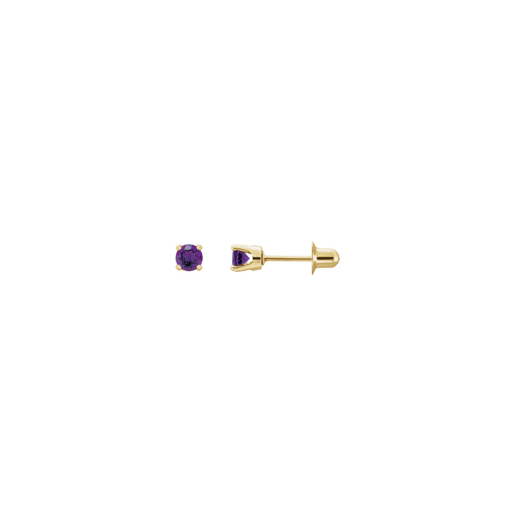 3 mm Round Natural Amethyst Stud Earrings (14K)