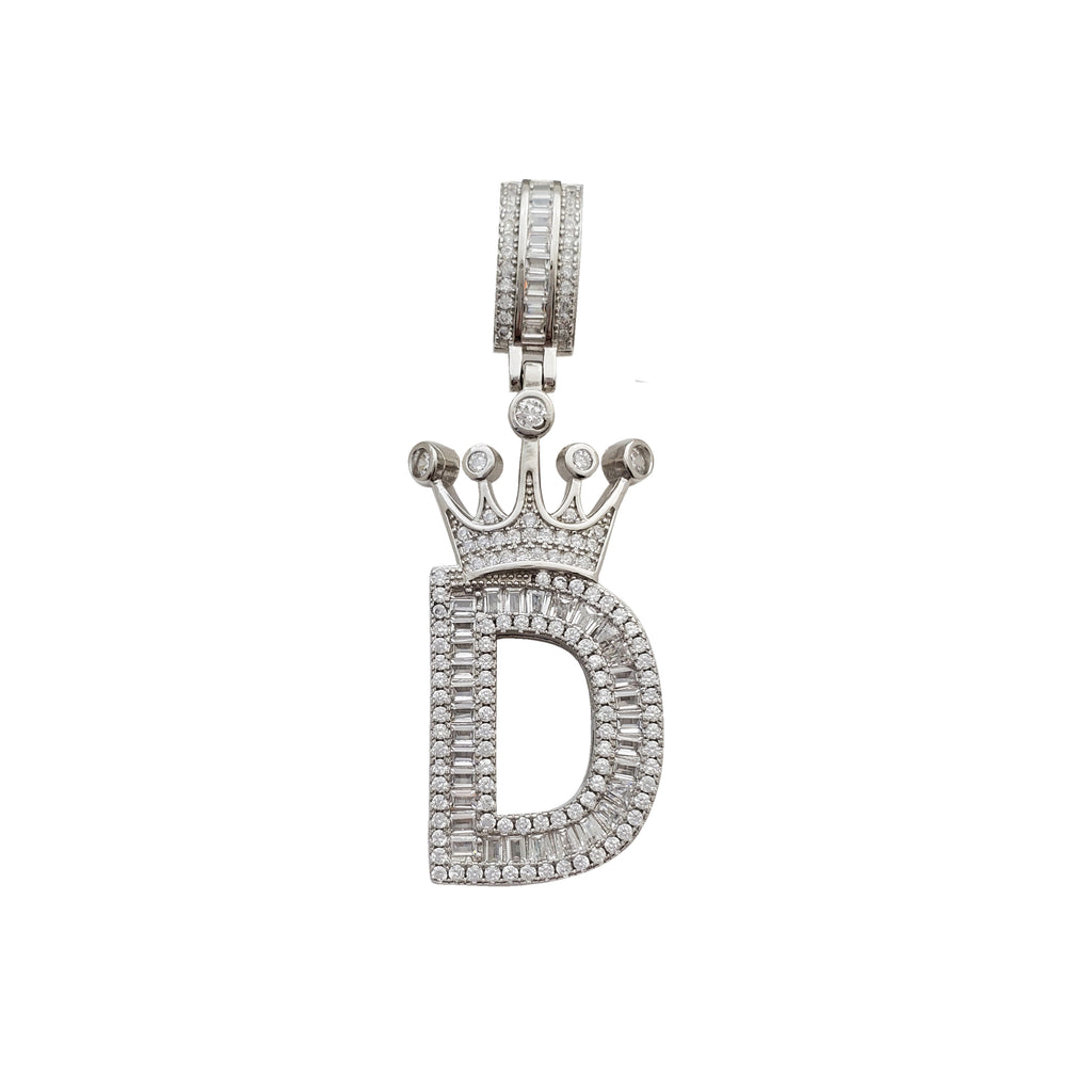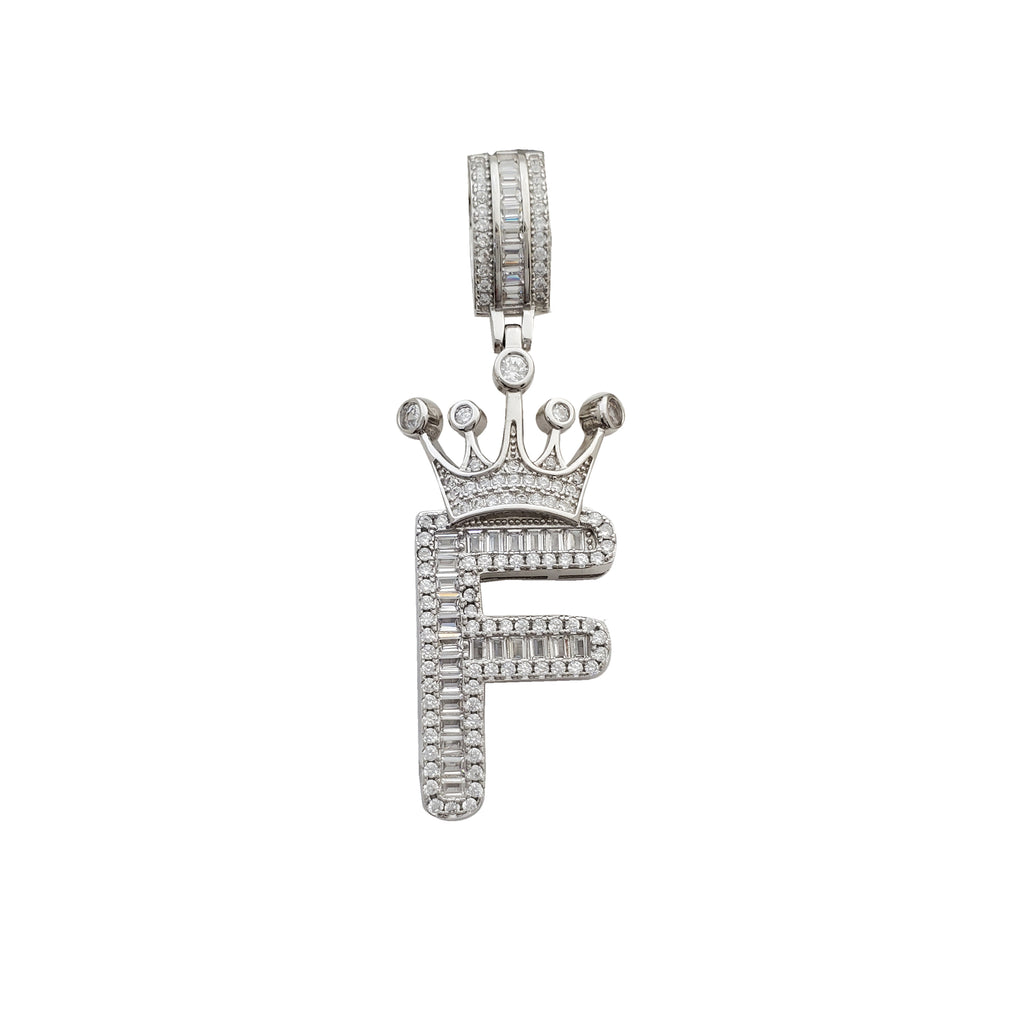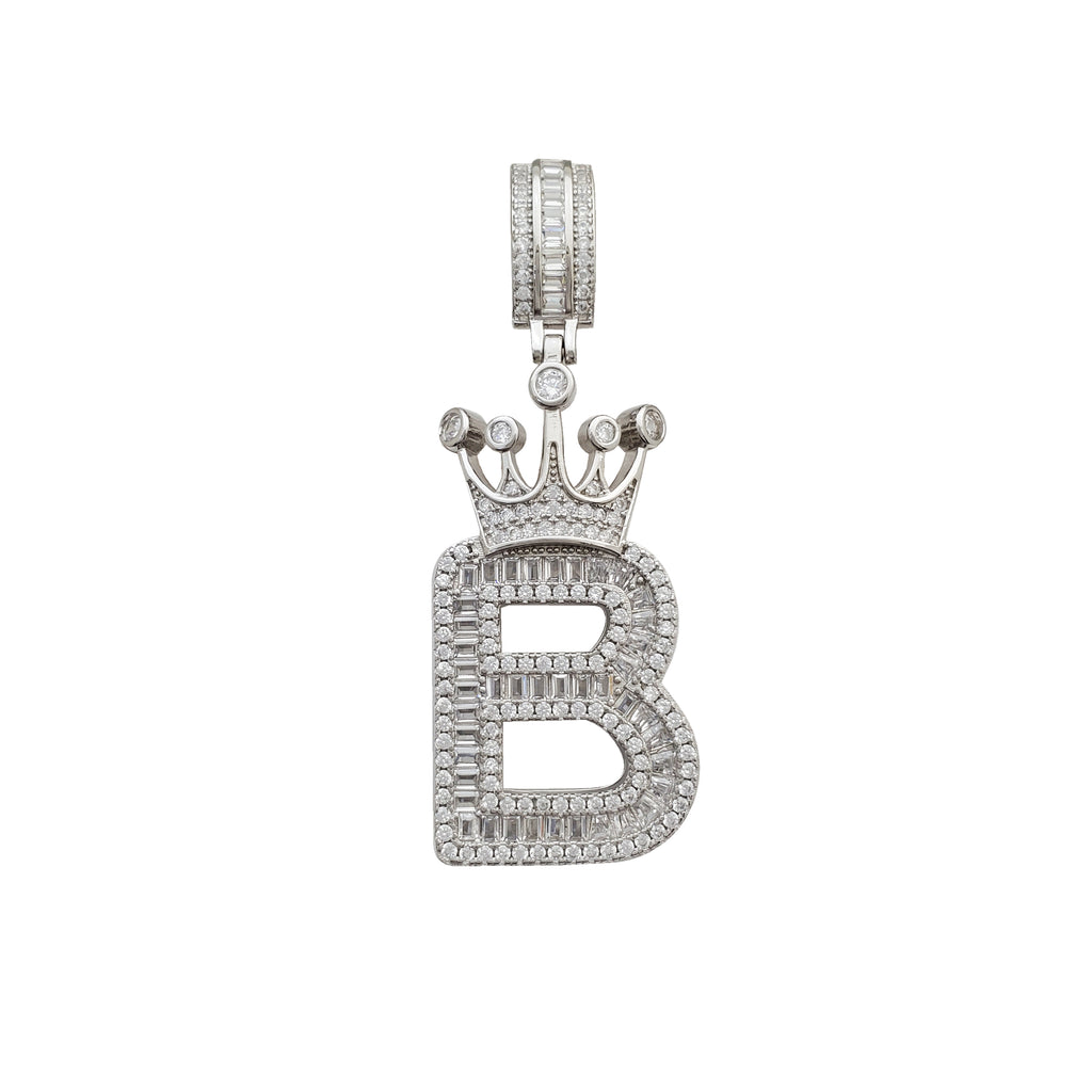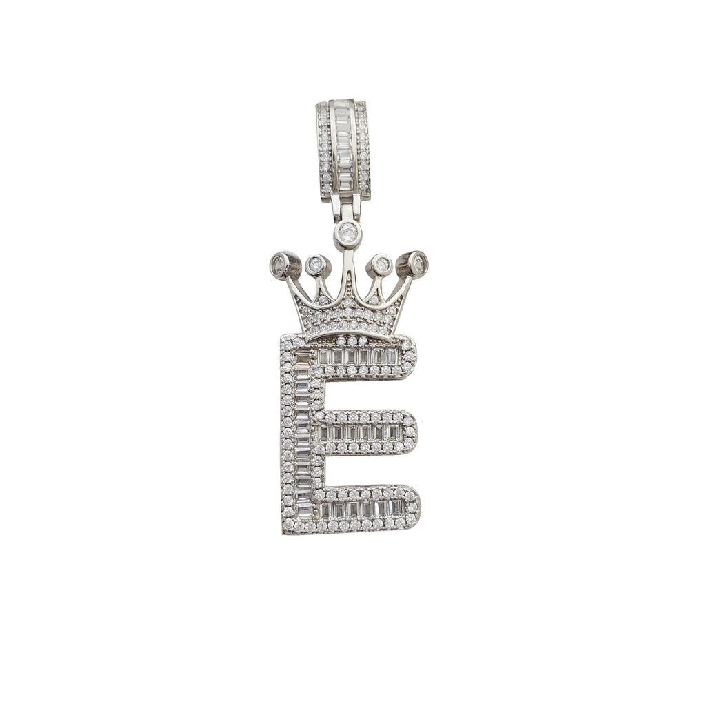 [2.2 inch] Icy Crown Initial Letter Pendant (Silver)