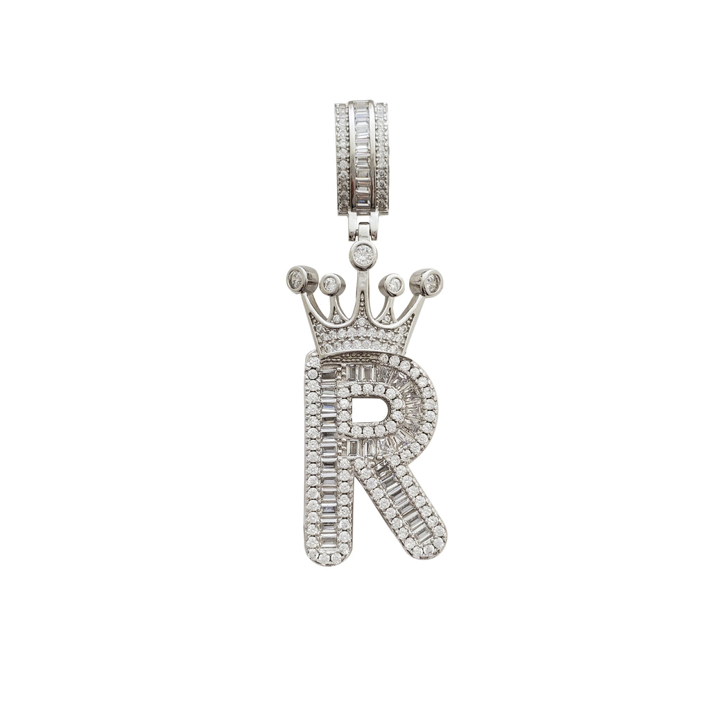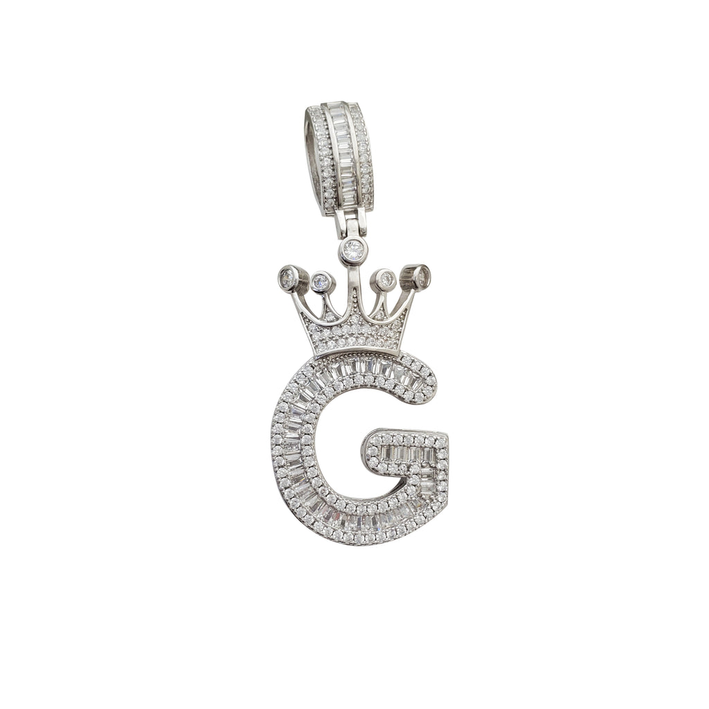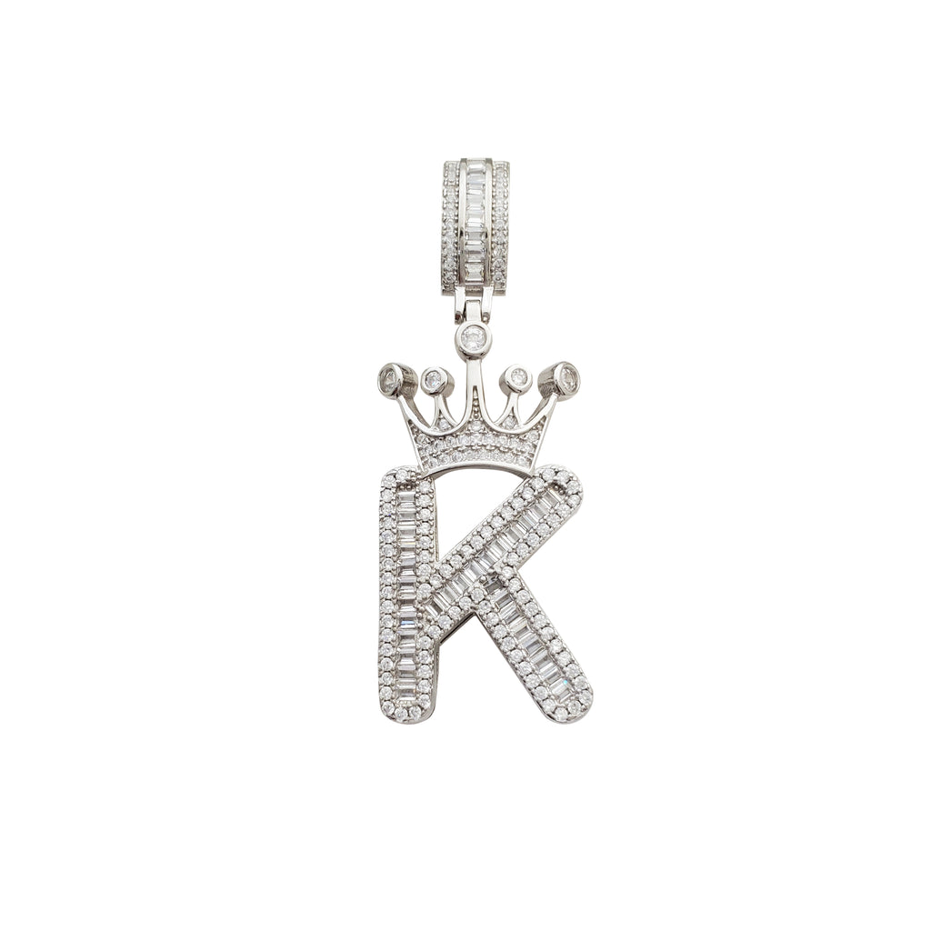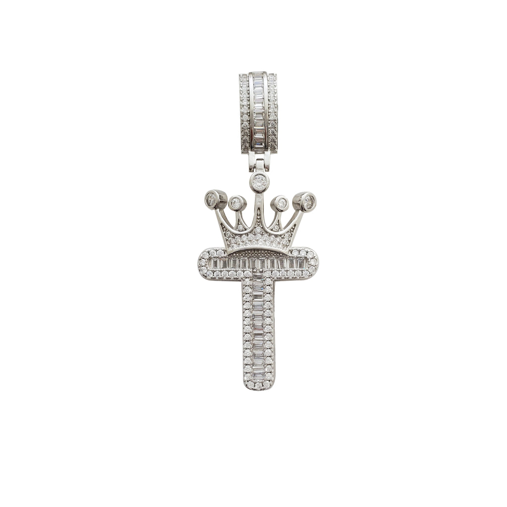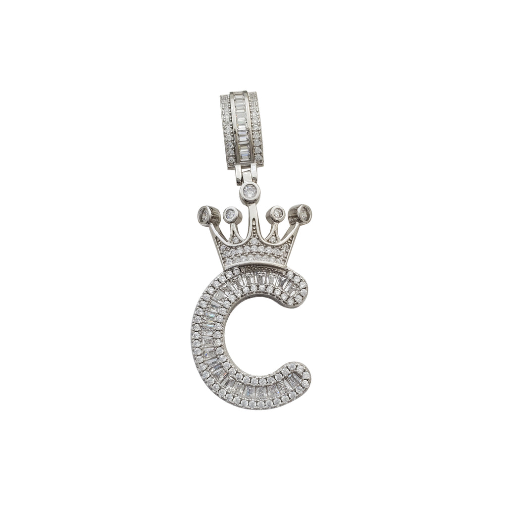 [2.2 inch] Icy Crown Initial Letter Pendant (Silver)