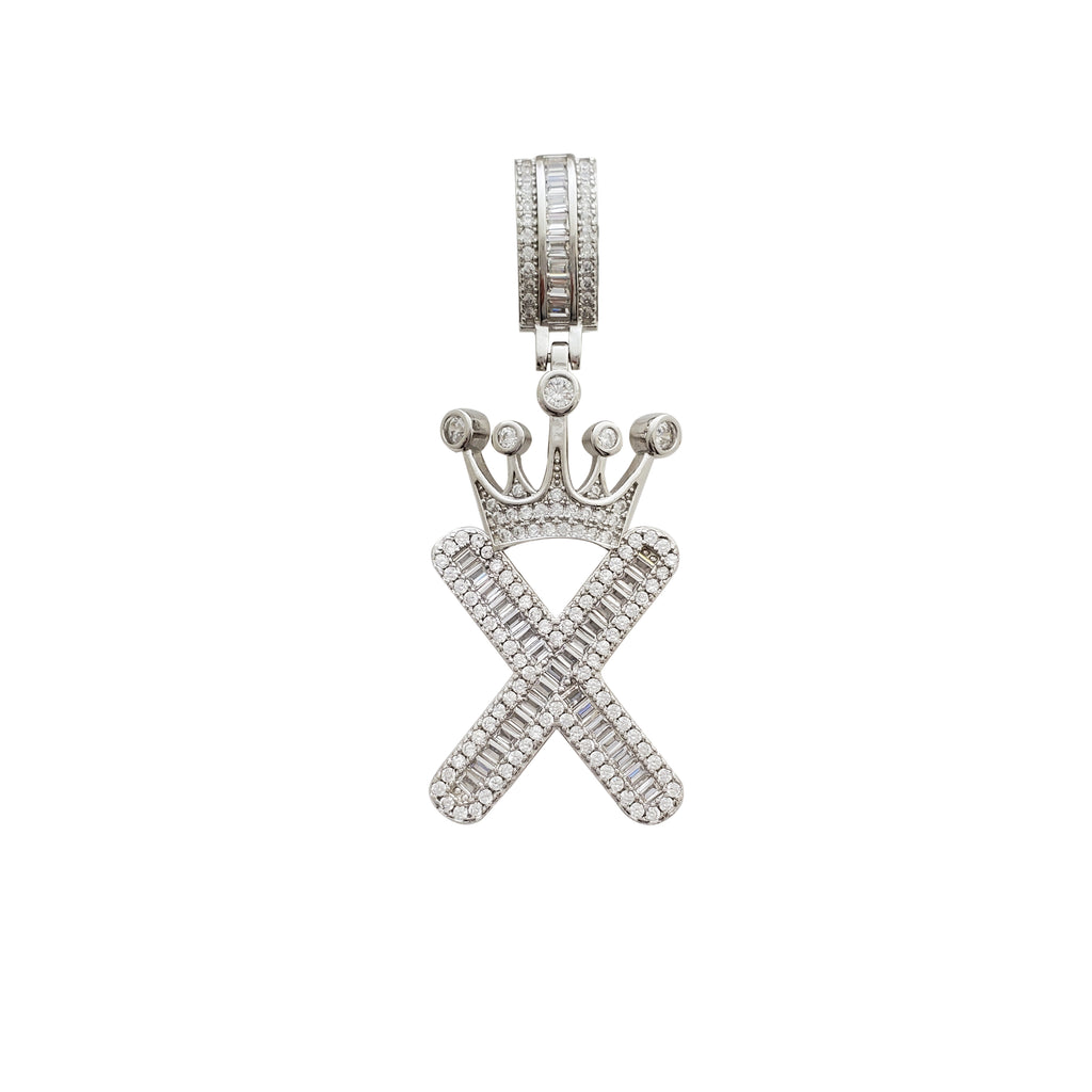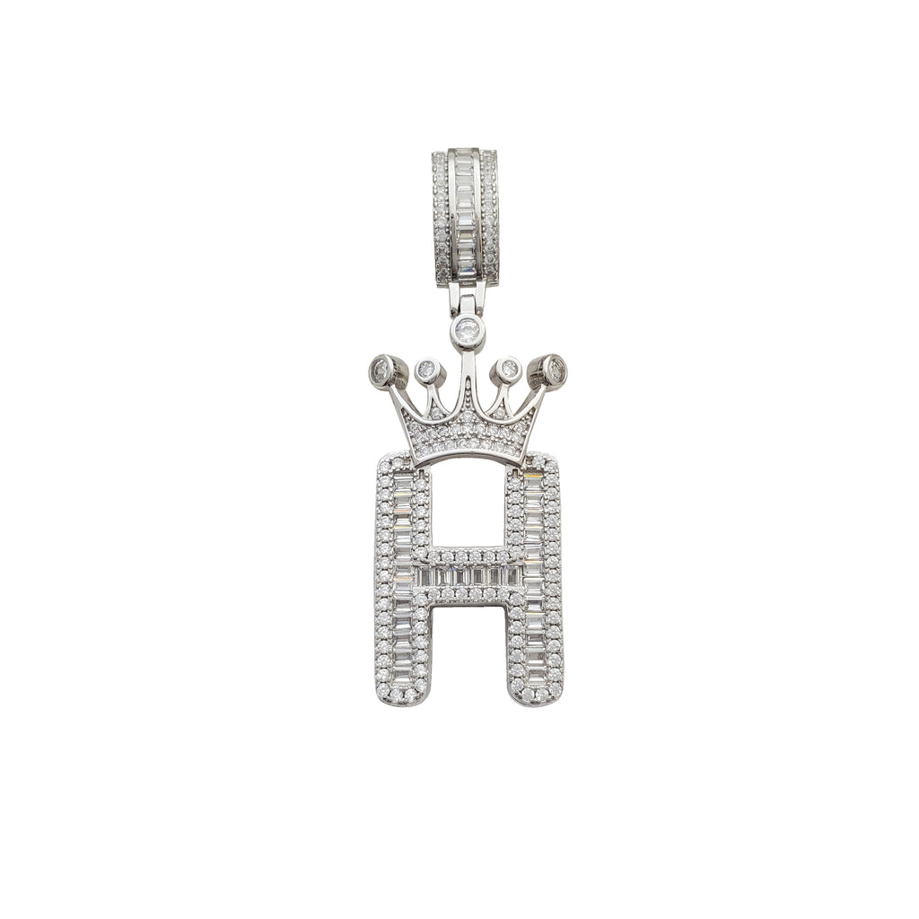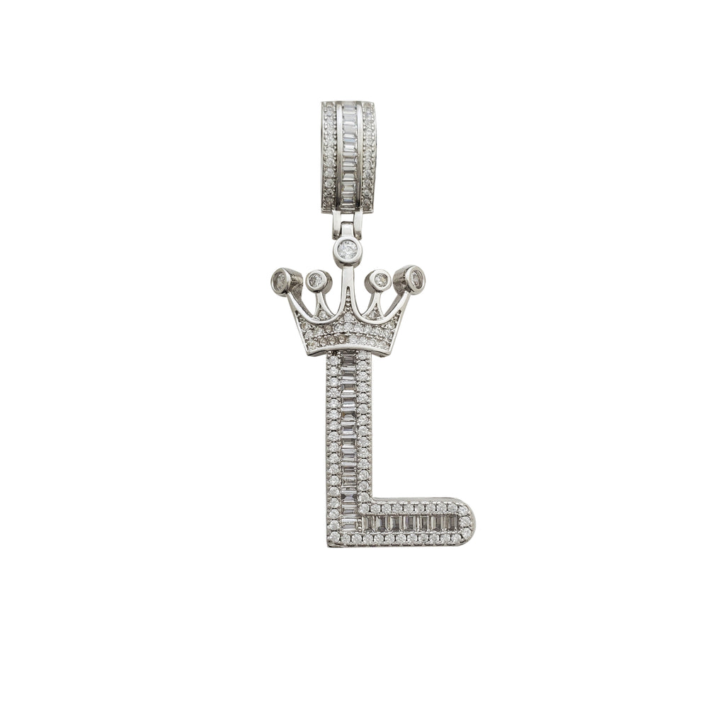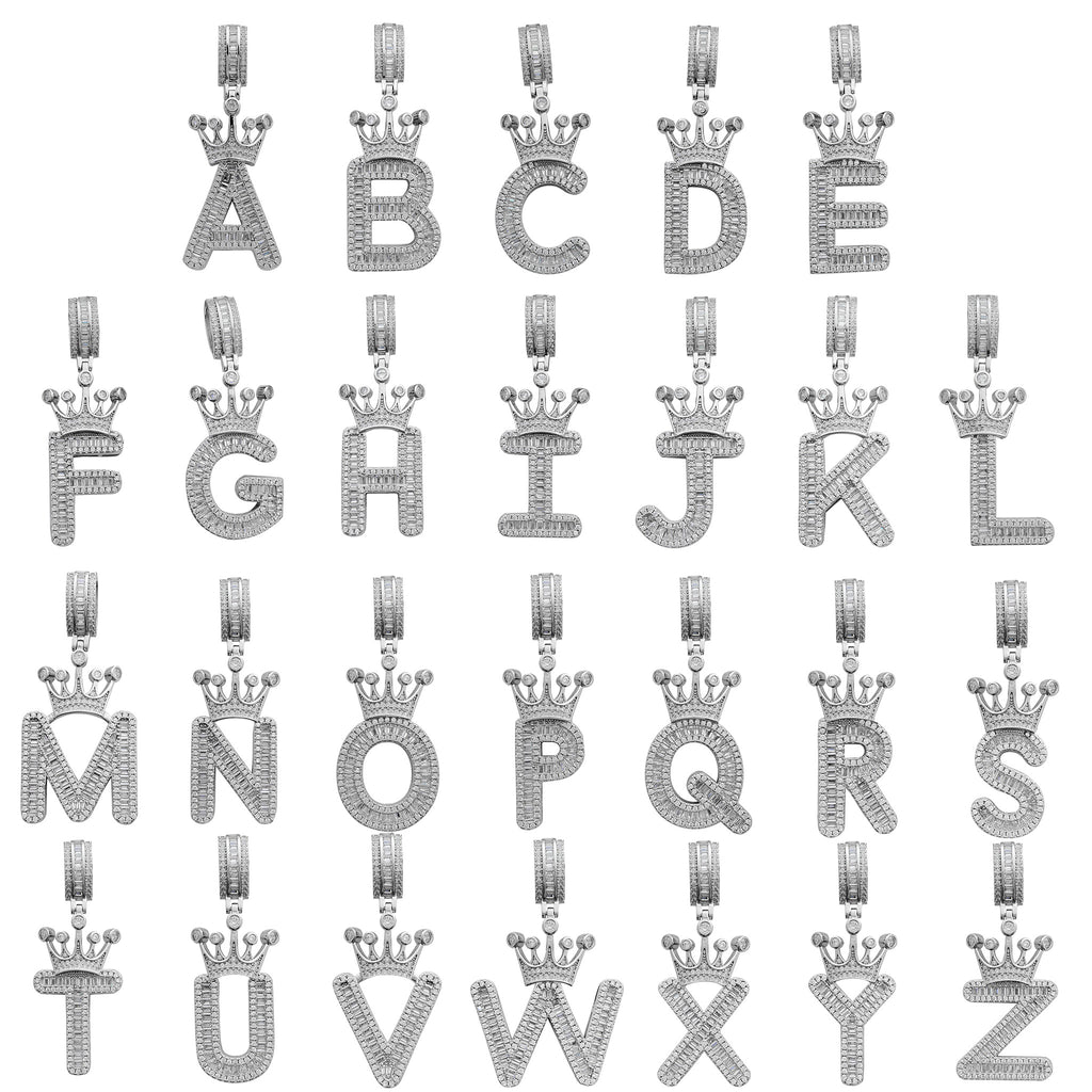 [2.2 inch] Icy Crown Initial Letter Pendant (Silver)