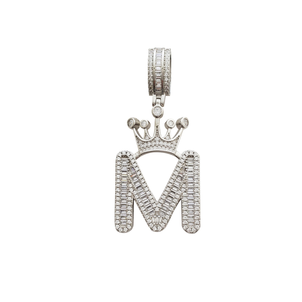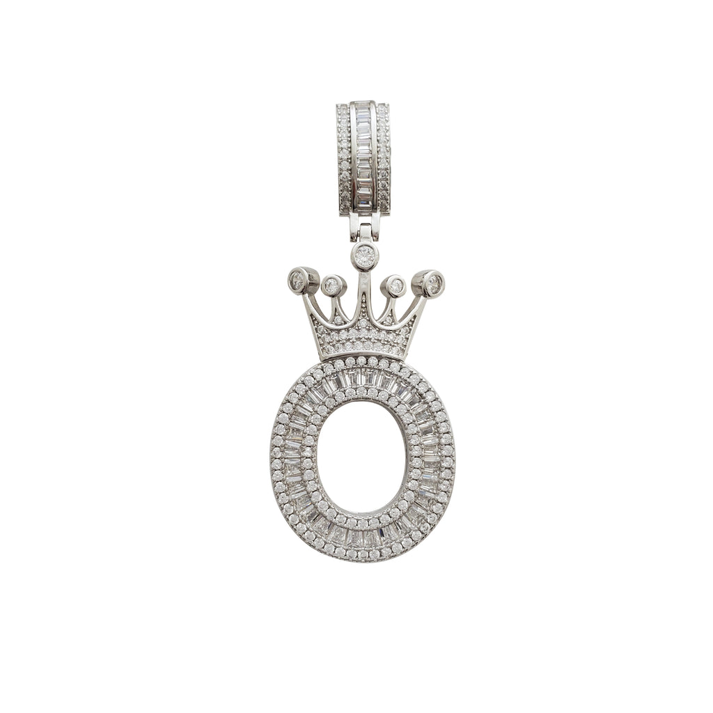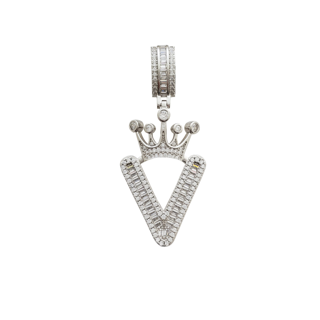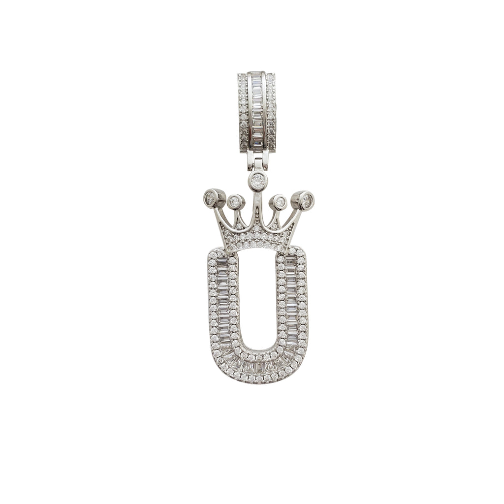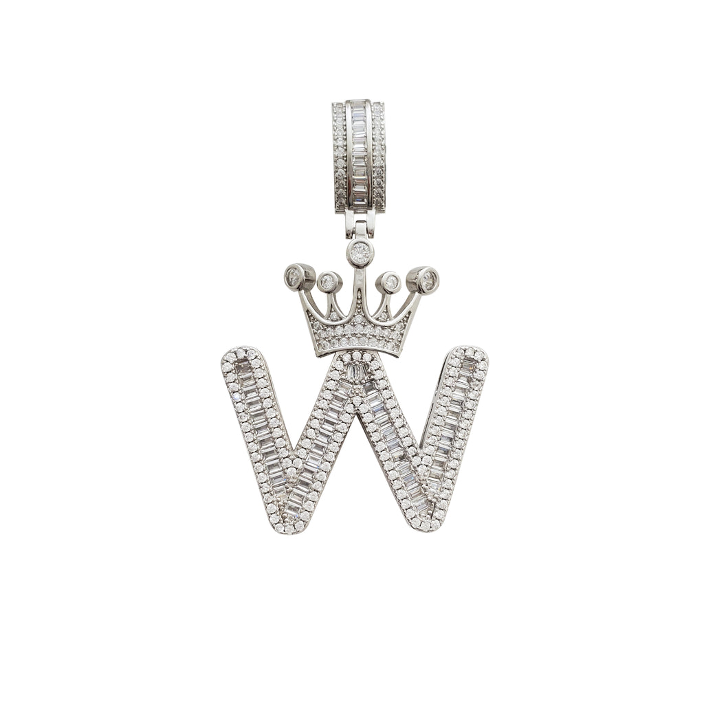 [2.2 inch] Icy Crown Initial Letter Pendant (Silver)