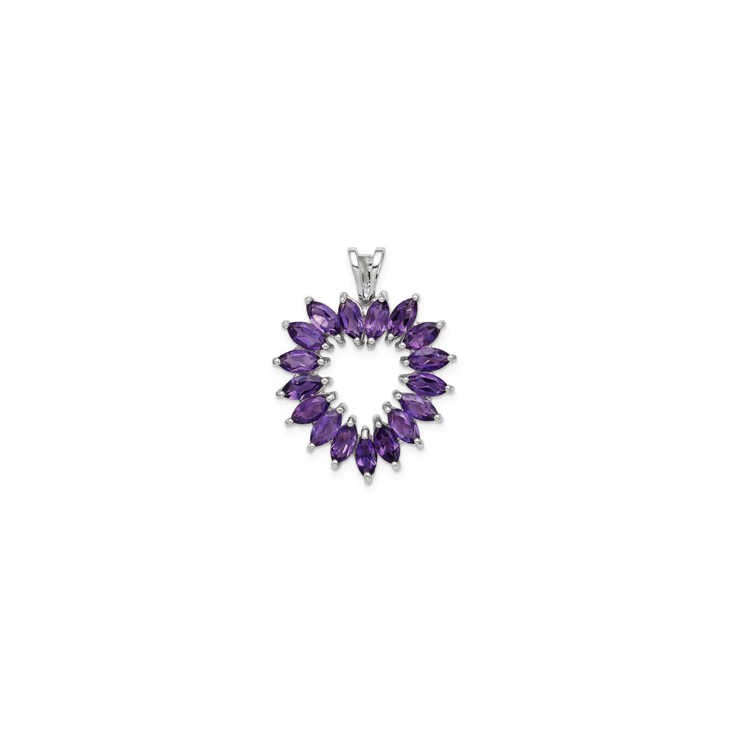 Marquise Amethyst Heart Outline Pendant (Silver)