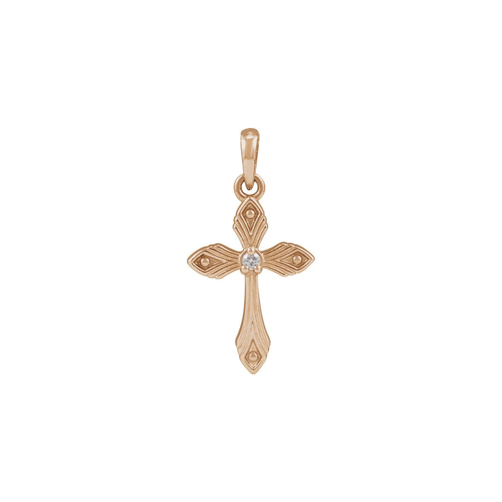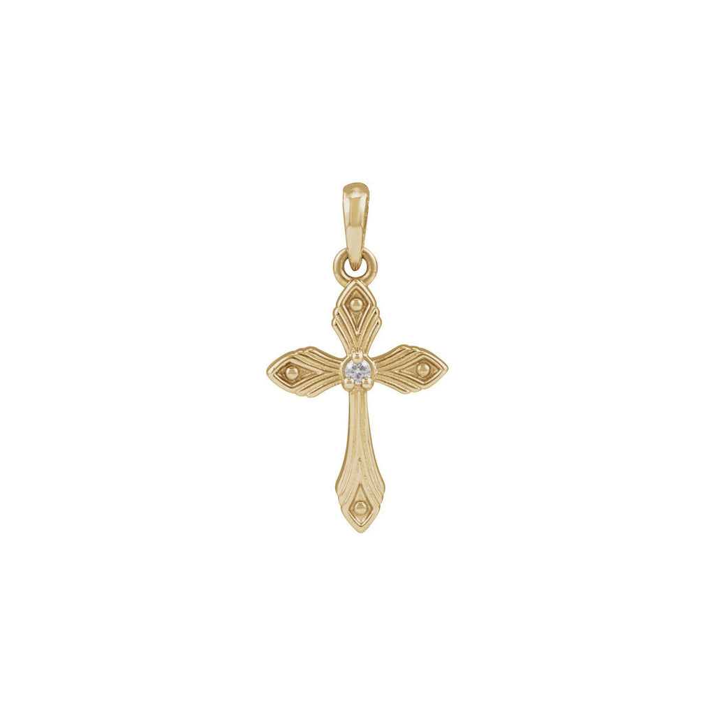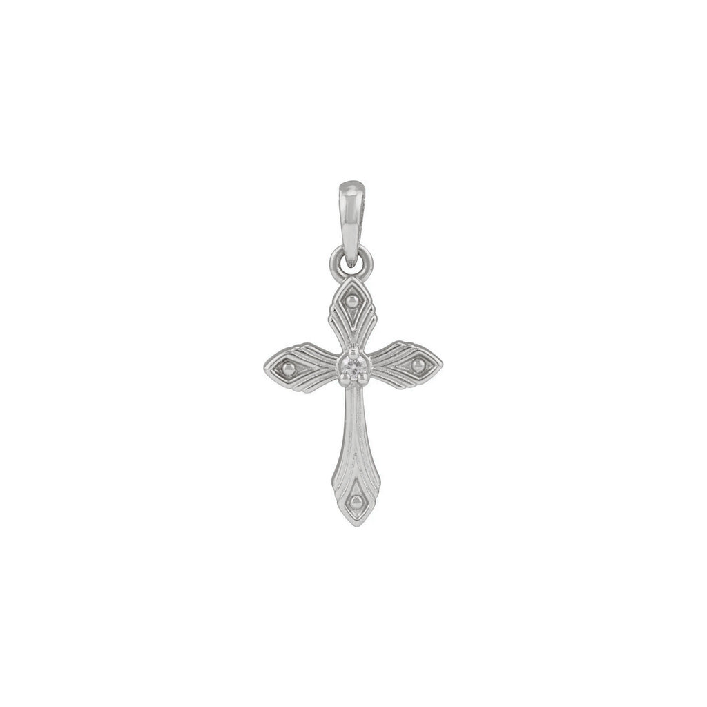 A sleek grooved design combined with the mesmerizing touch of a round-cut white diamond; This symbolic piece is ready to bring a divine shine to your everyday look.