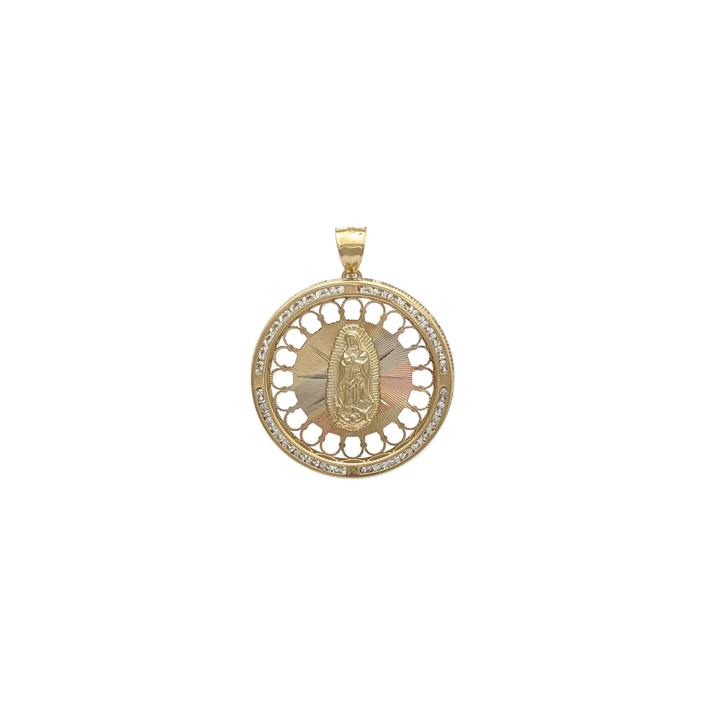 Our Lady of Guadalupe Round Tricolor Pendant (14K)