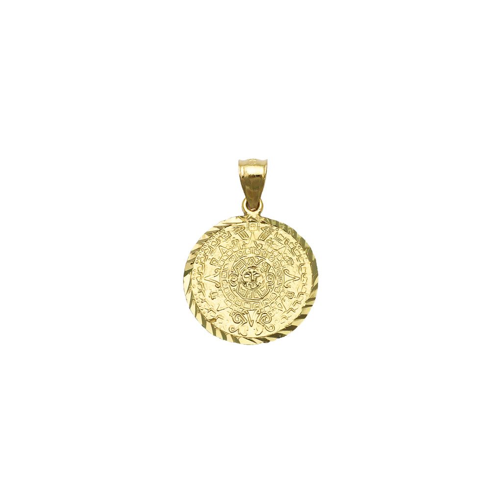 Reversible Aztec Calendar and Compass Pendant (14K)