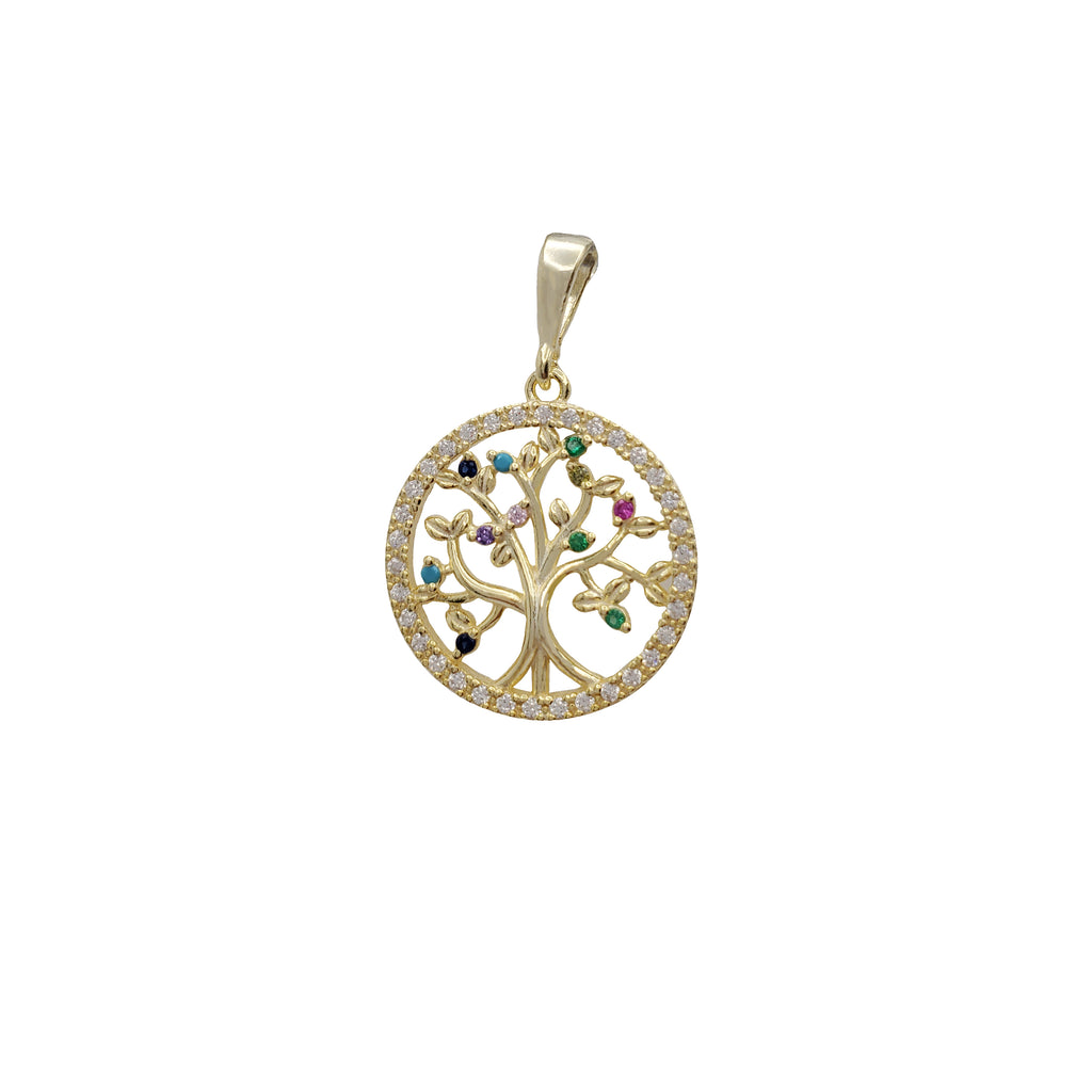 Colorful Family Tree Round Pendant (Silver)