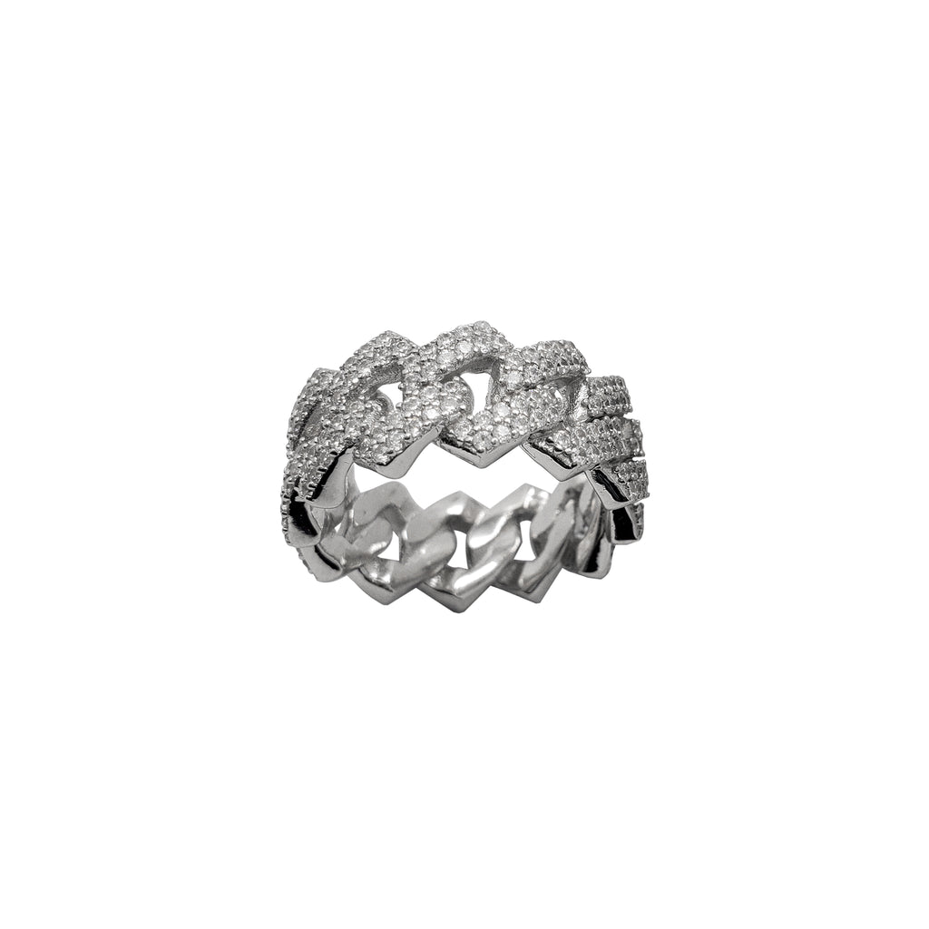 Zirconia Edged Cuban Ring (Silver)