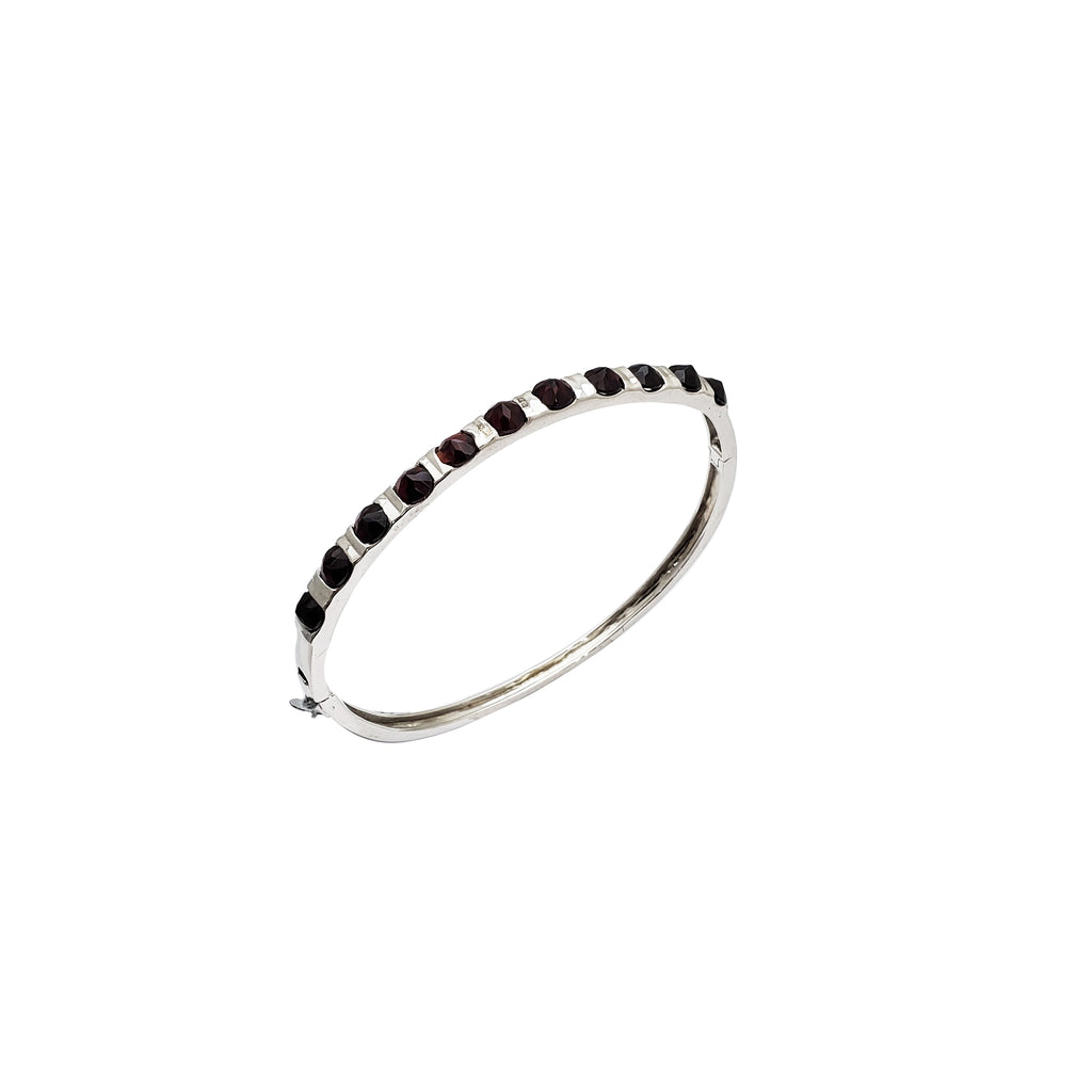 Dark Red Stone Bangle (Silver)