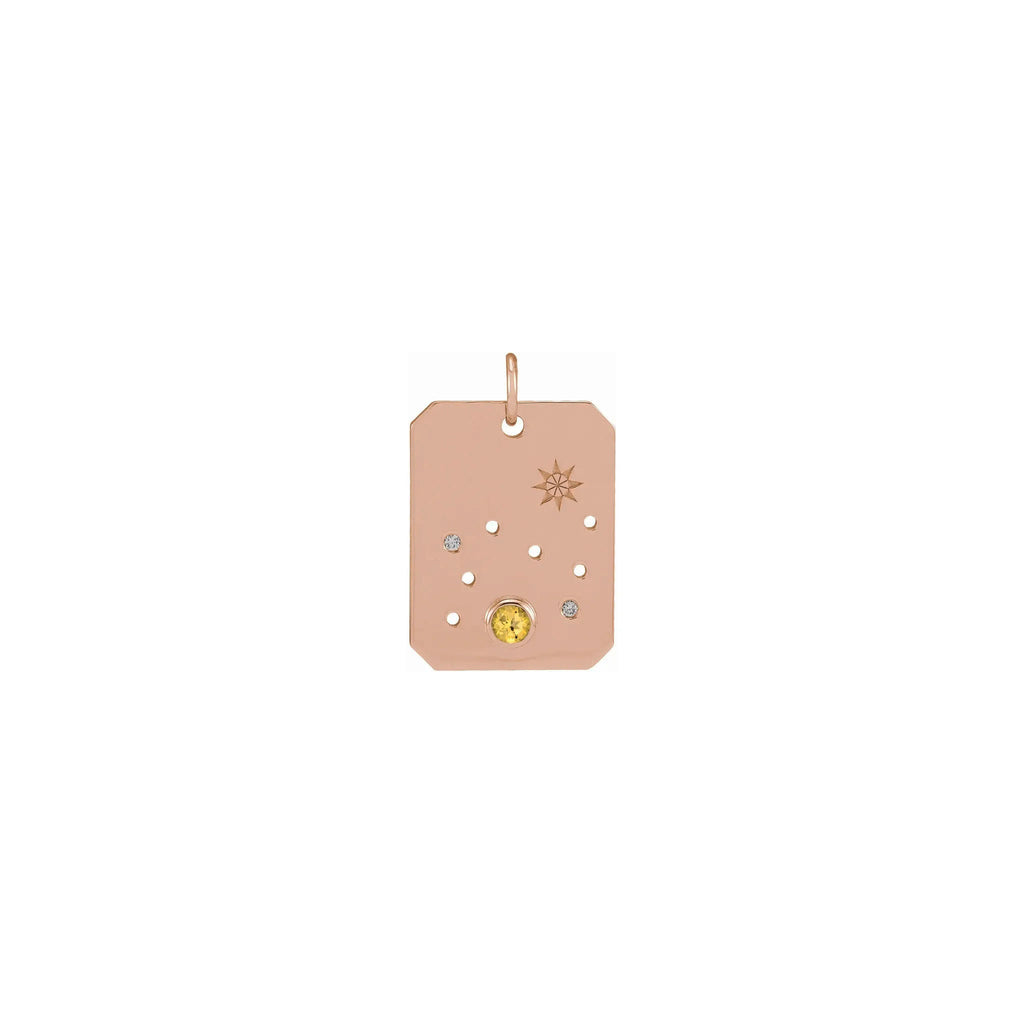 Leo Zodiac Constellation Citrine and Diamond Pendant