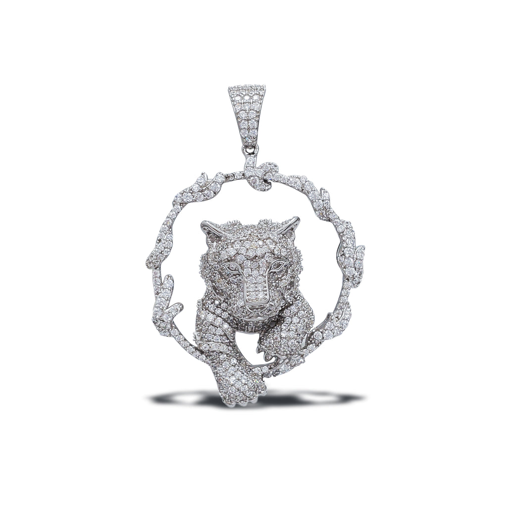 Tiger Jumping Through Hoop CZ Pendant (Silver)