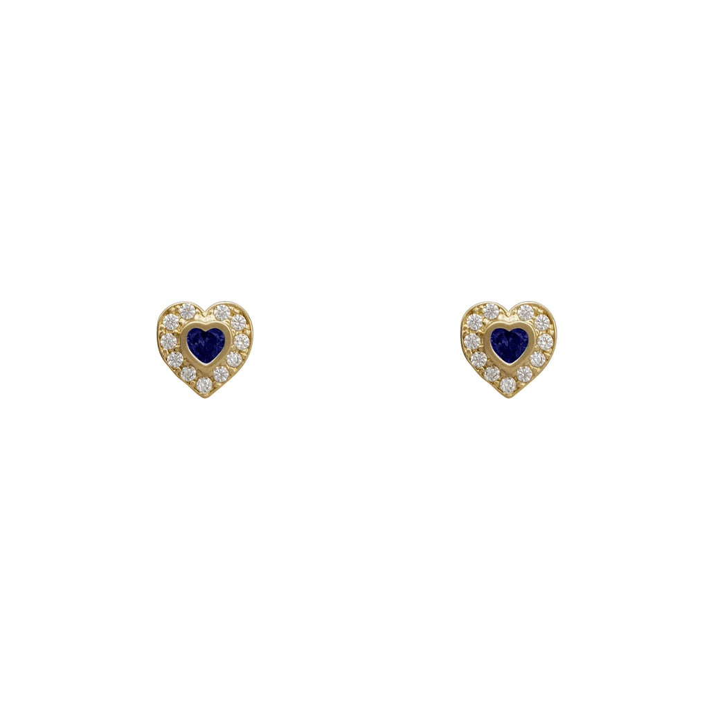 Zirconia Heart Bezel Stud Earrings (14K)