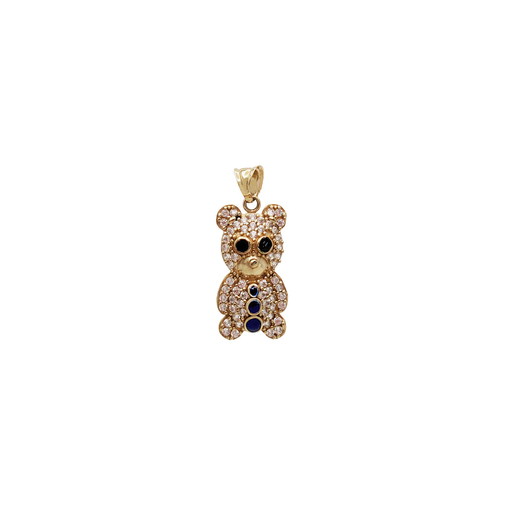 Zirconia With Stones Teddy Bear Pendant (14K)