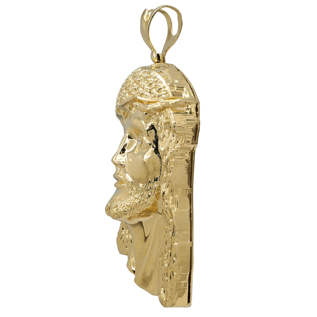 [5.2 inch] Zirconia Textured Jesus Head Close Back Pendant (14K)