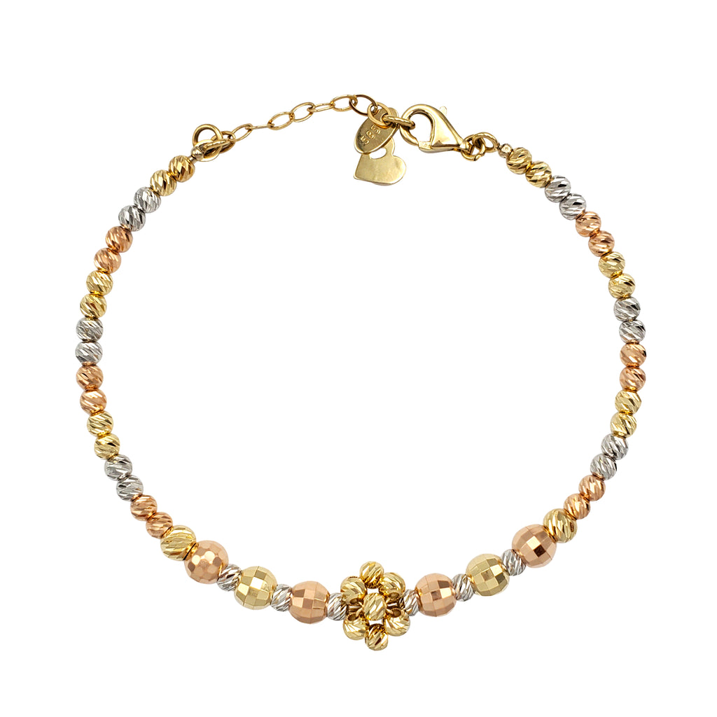 [Adjustable] Tricolor Moon-cuts & Disco-cuts Bangle Bracelet (14K).