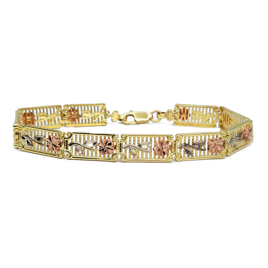 Tricolor Long Stem Rose Flower Bracelet (14K).