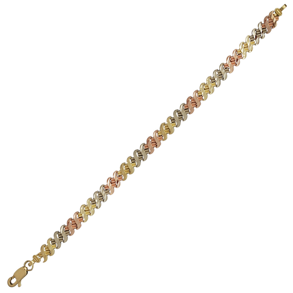 Tricolor Milgrain Diamond-cuts "X" Fancy Lady Bracelet (14K).