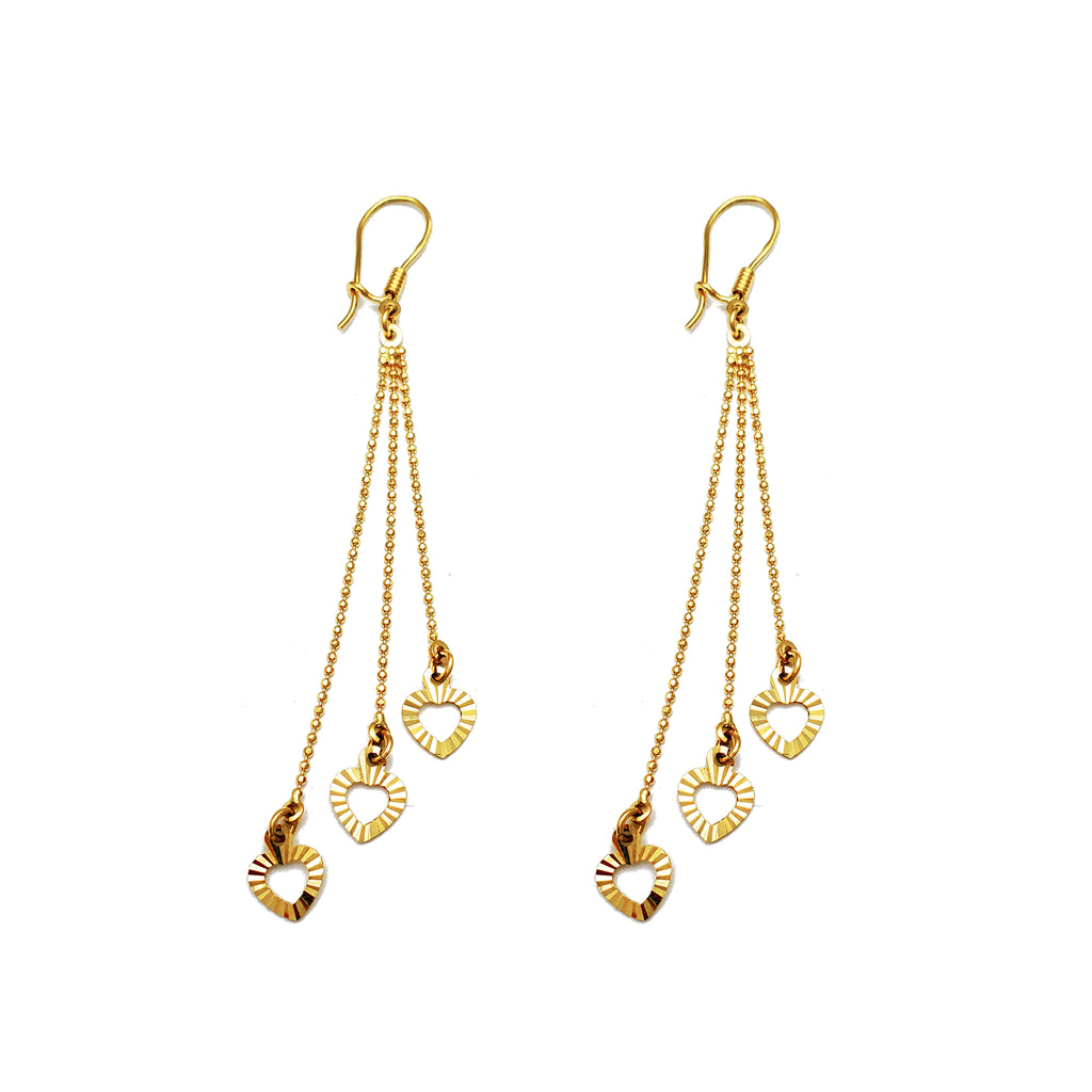 Diamond Cuts Hearts & Ball Drop Earrings (14K)