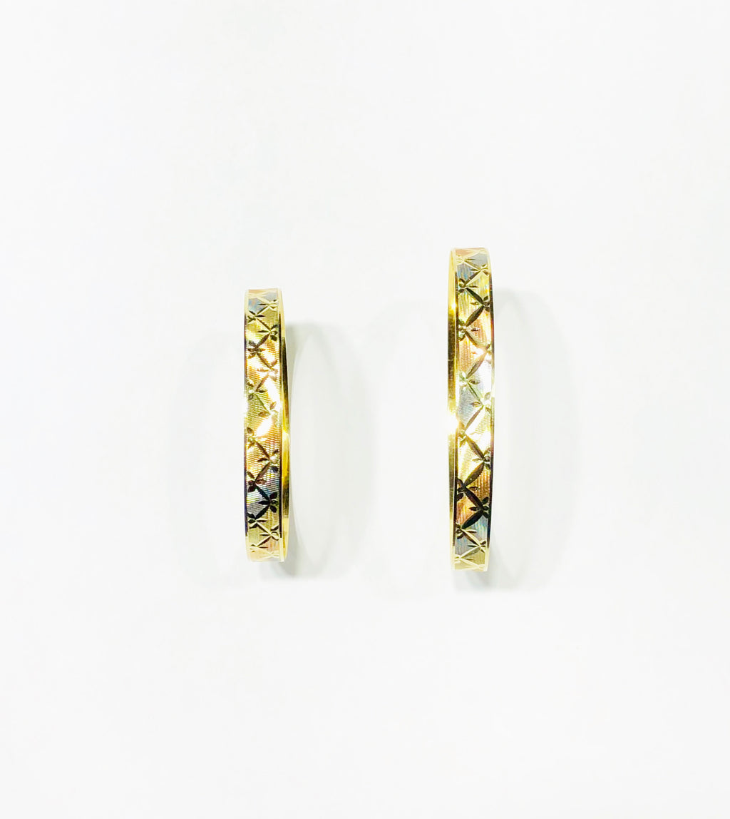 Tri-Color Diamond-Cut Bangle (14K).