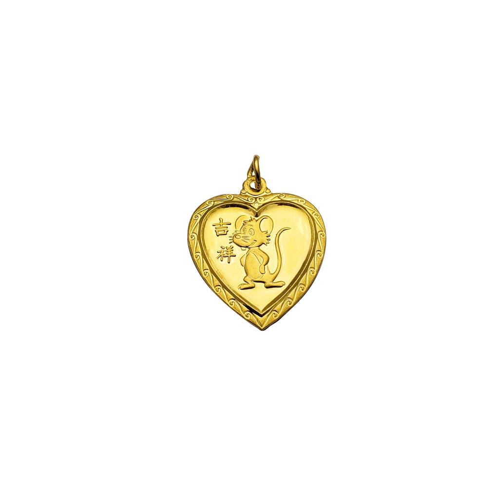Yellow Gold Heart Shape Rat Pendant (24K)