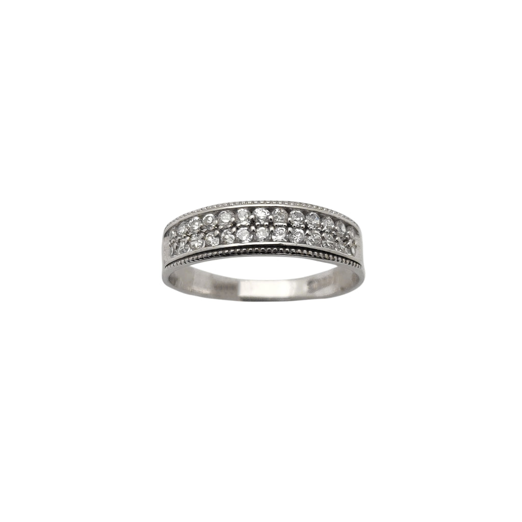Milgrain Border Double-Row Pavé Wedding Band (14K)