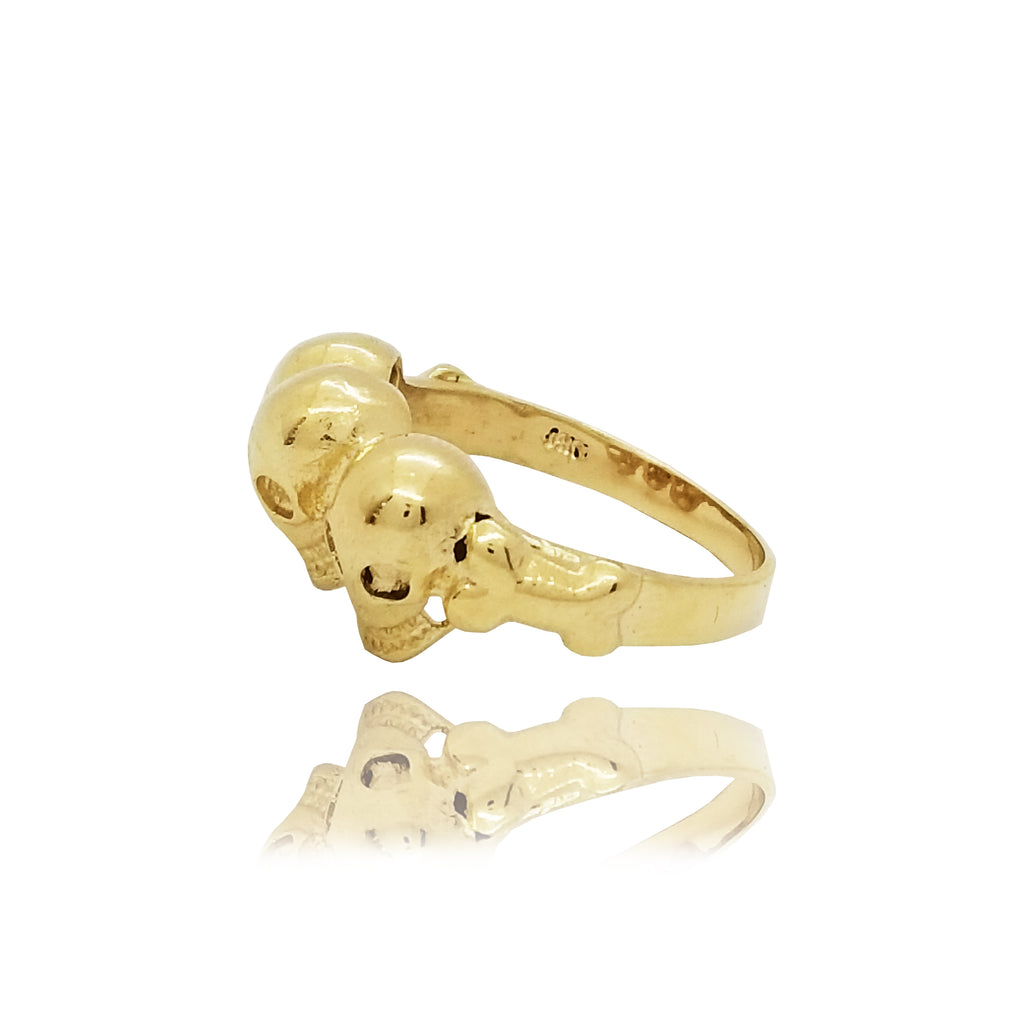 Description: This is a Three Skull Yellow Gold Ring (14K) made with the highest quality metal that has been polished and refined to perfection.