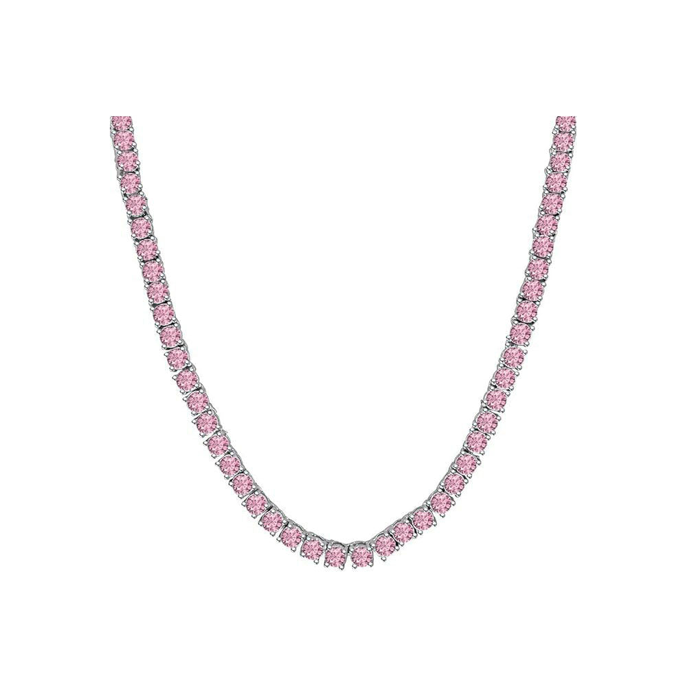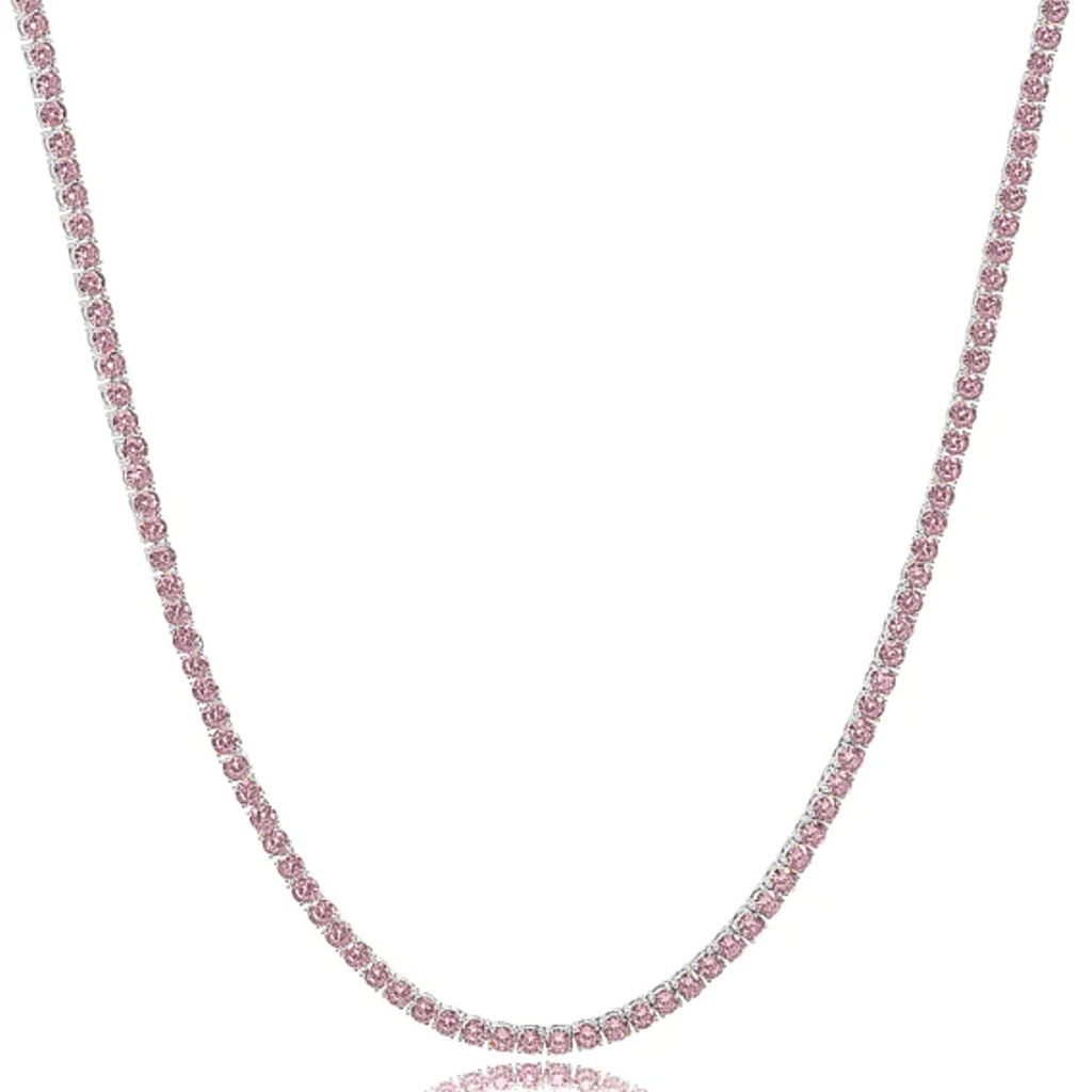 Pink Cubic Zirconia Tennis Necklace/Chain (Silver)