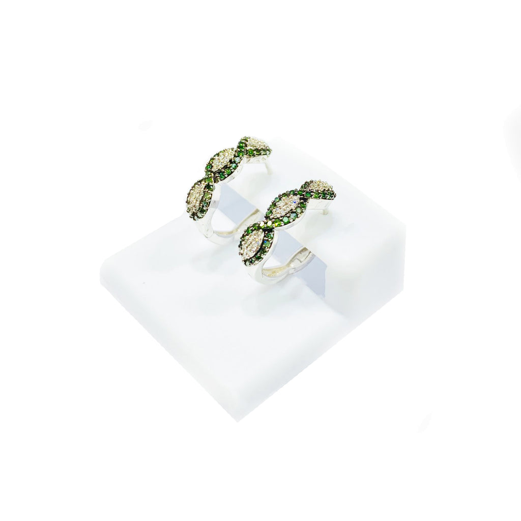 This is a brilliant Cocktail infinity Earring with white and green diamonds.