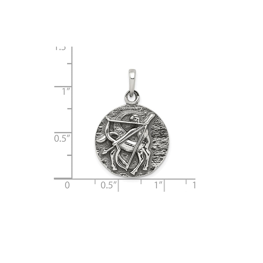 Antique-Finish Sagittarius Zodiac Pendant (Silver)
