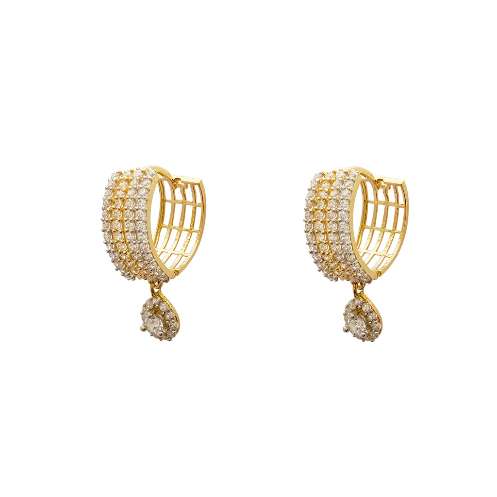 Four-Row Pave Teardrop Huggie Earrings (14K)