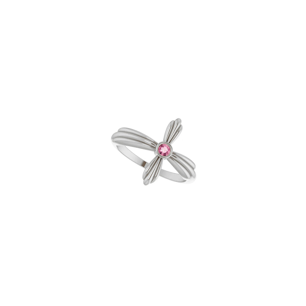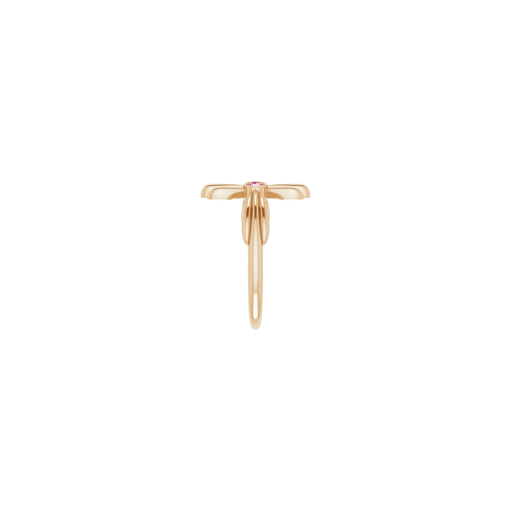 Natural Pink Tourmaline Sideways Ribbed Cross Ring