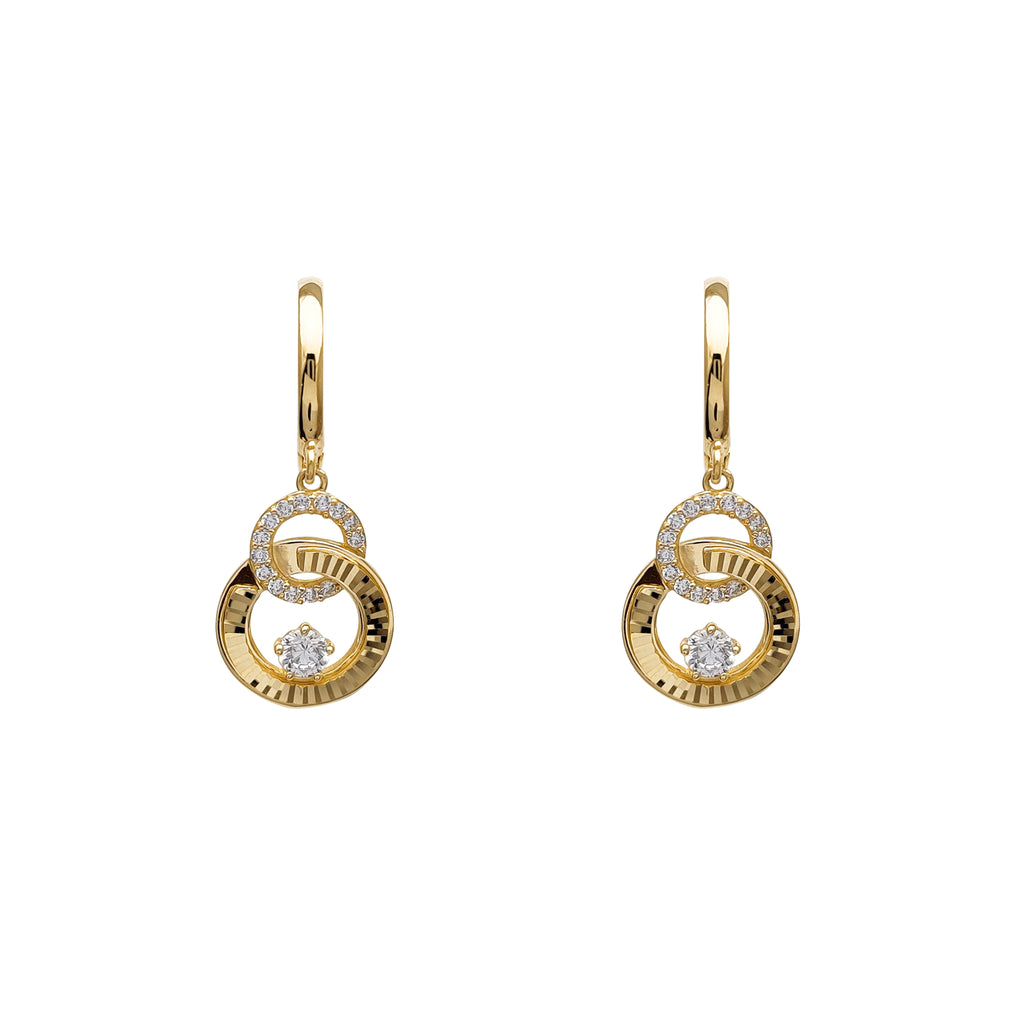 Pave & Fluted Interlocking Hoops Dangling Huggie Earrings (14K)