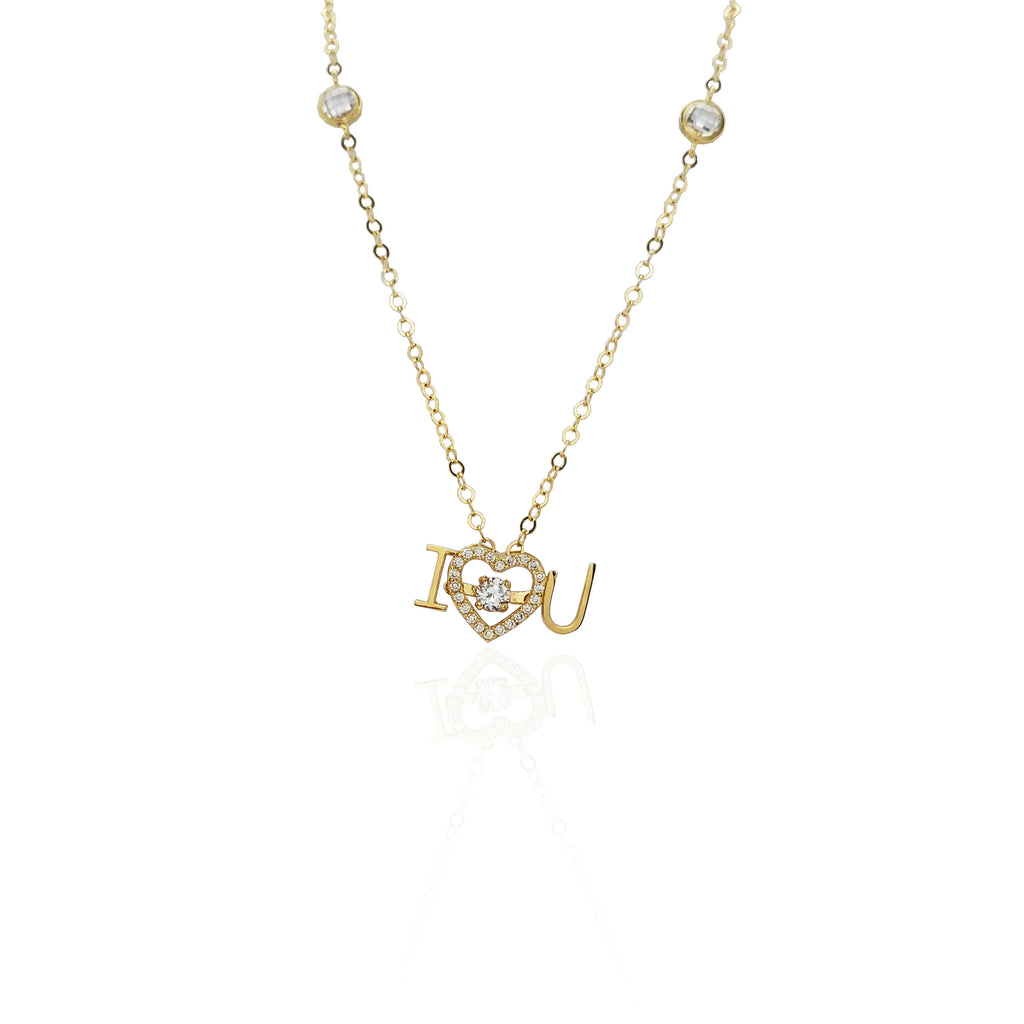 I Love You Heart CZ Pendant Necklace (14K).