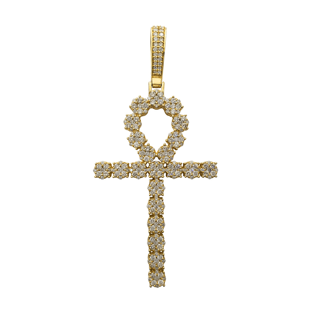 Diamond Iced-Out Beaded Ankh Pendant (14K)