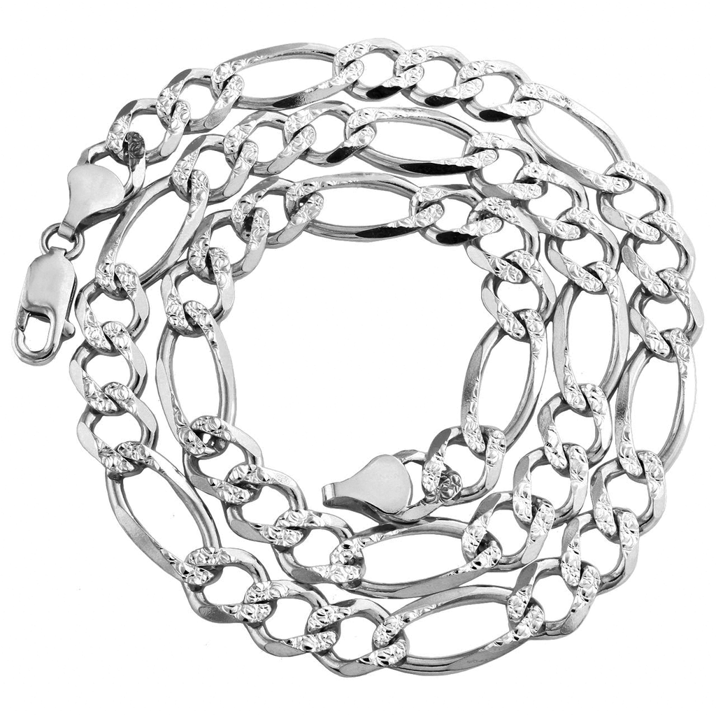 The easily recognizable Figaro link is comprised of a series of three smaller links connected by an elongated oval link. This variant of Figaro chain features an intra-link diamond cut for added brilliance.