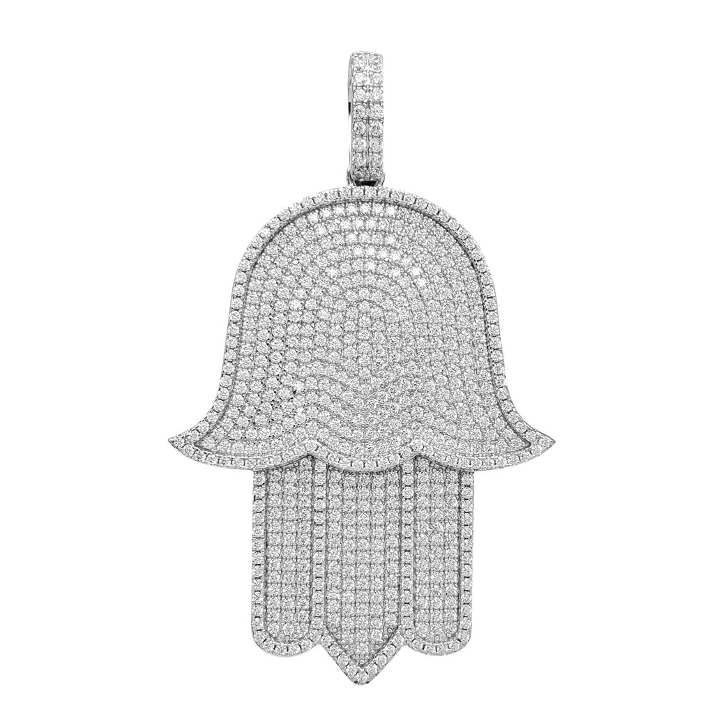 Iced-Out Hamsa Hand Pendant (Silver)