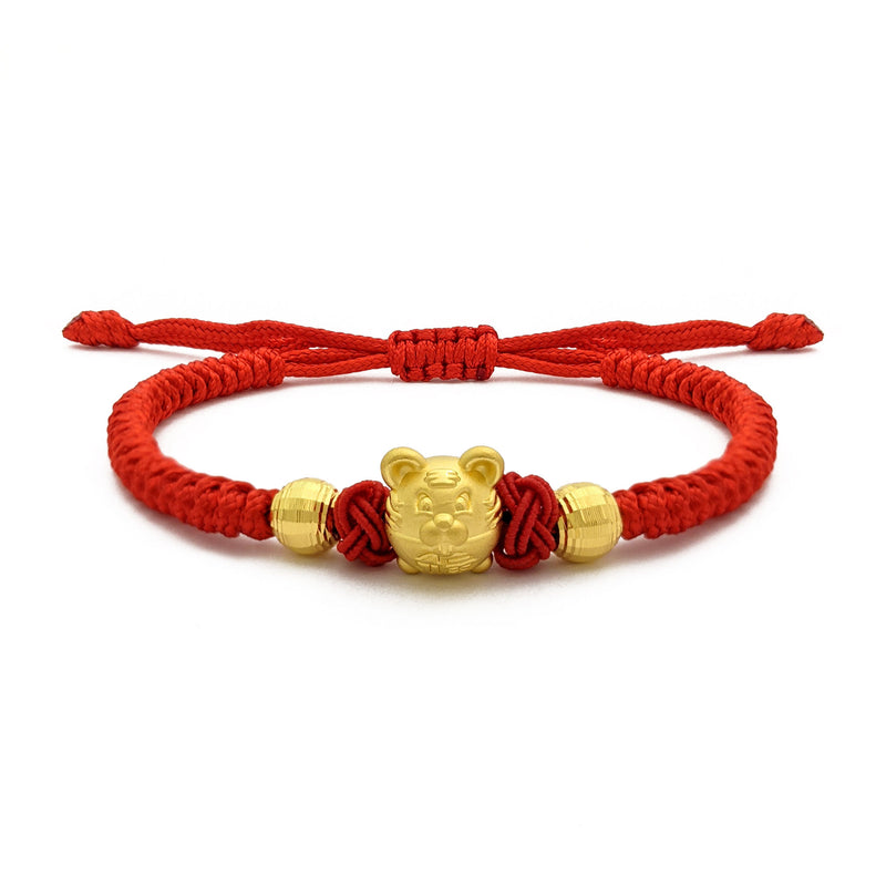 Tiger Ball Chinese Zodiac Red String Bracelet (24K)