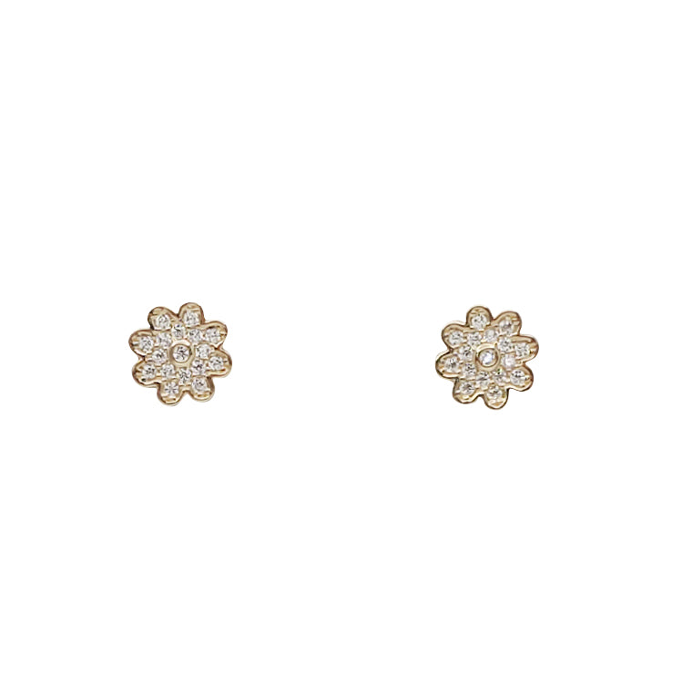 Zirconia Flower Stud Earrings (14K)