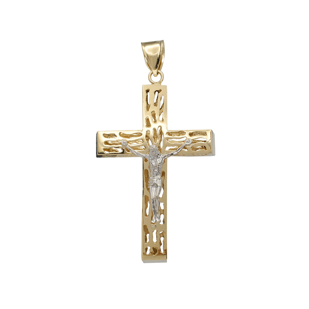 Two-Tone Wood Pattern Crucifix Cross Pendant (14K)