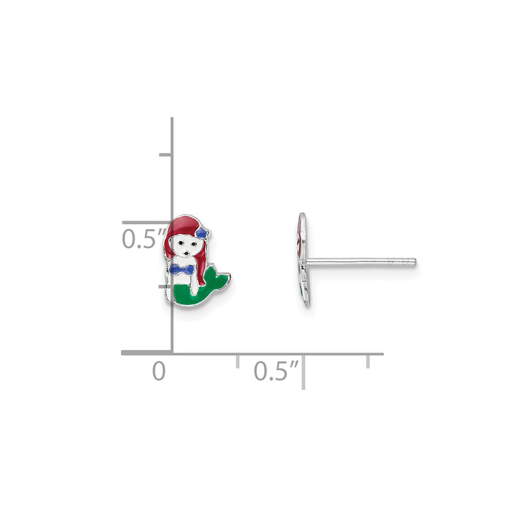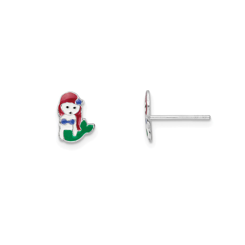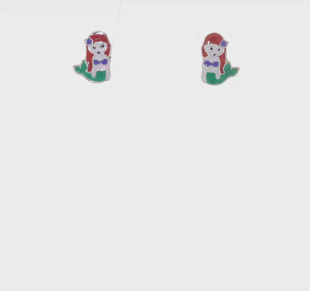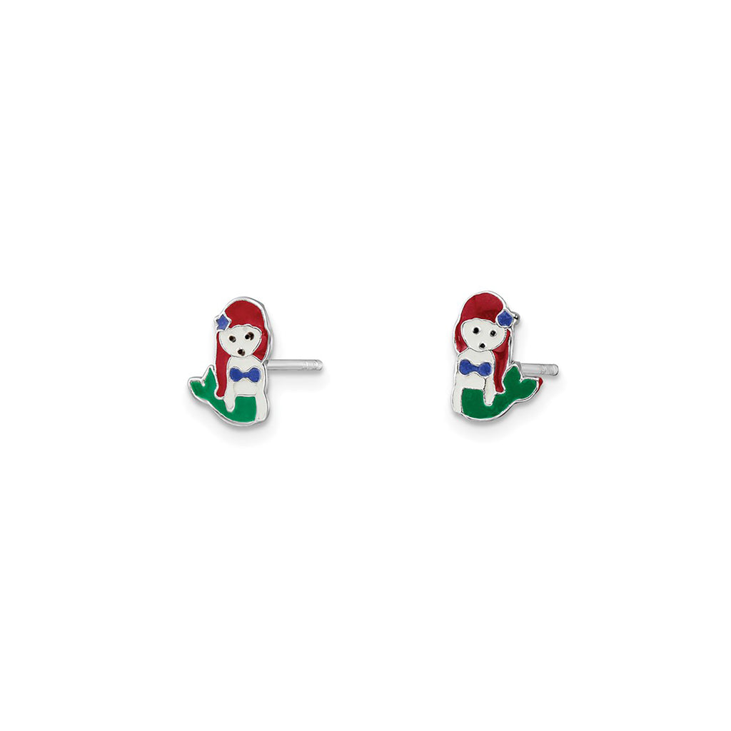 Enamel Mermaid Stud Earrings (Silver)